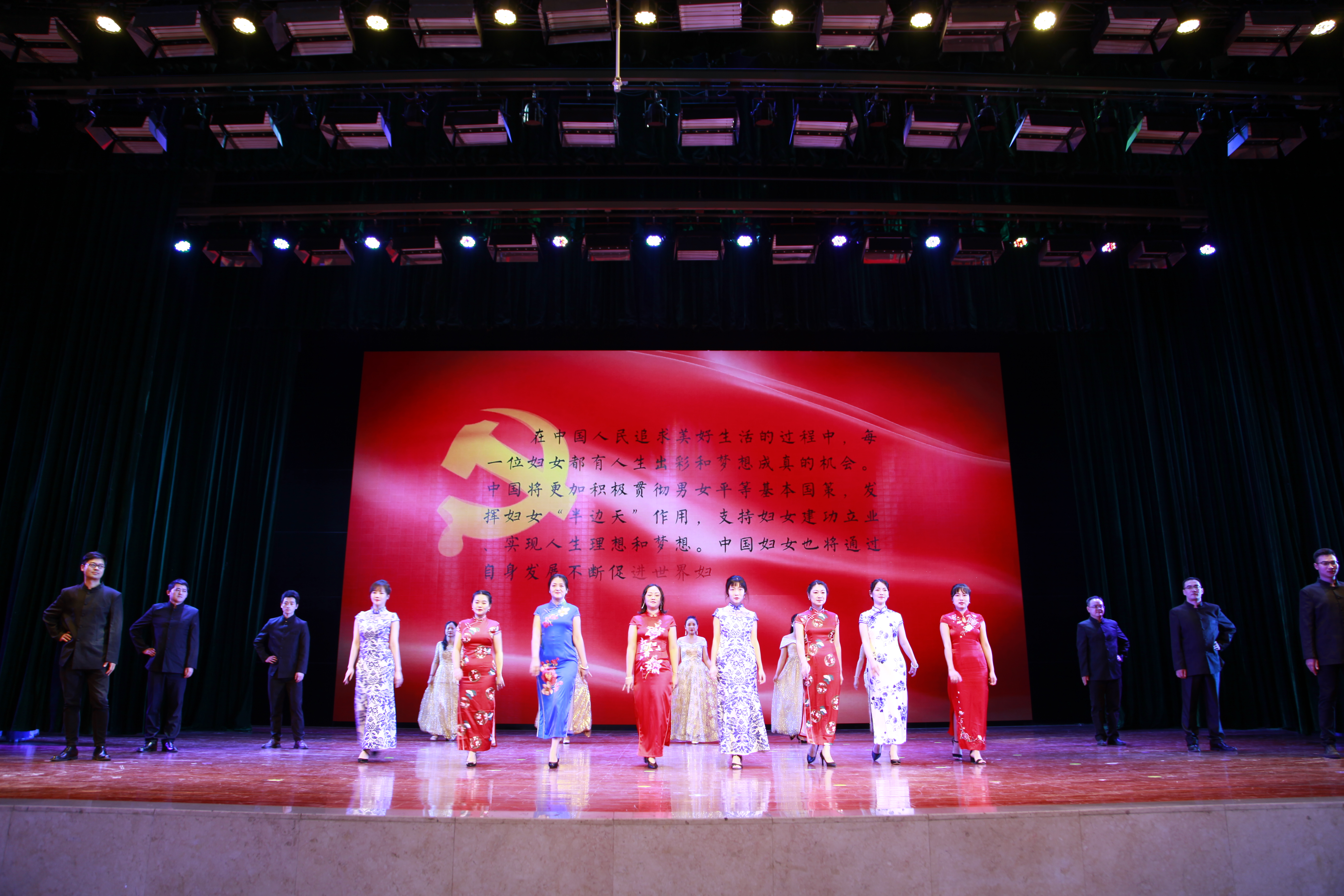 本次服饰秀由校工会、校女工委员会主办。校党委副书记李世碧,校党委副书记、工会主席李铭,校党委委员、副校长李燕、徐绍琼,以及各部门、学院的党政负责人、老师和学生等观看了演出。