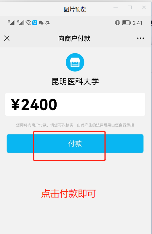 一、电脑端缴费 登录后收到如下缴费短信,点击“我的缴费”进行缴费。