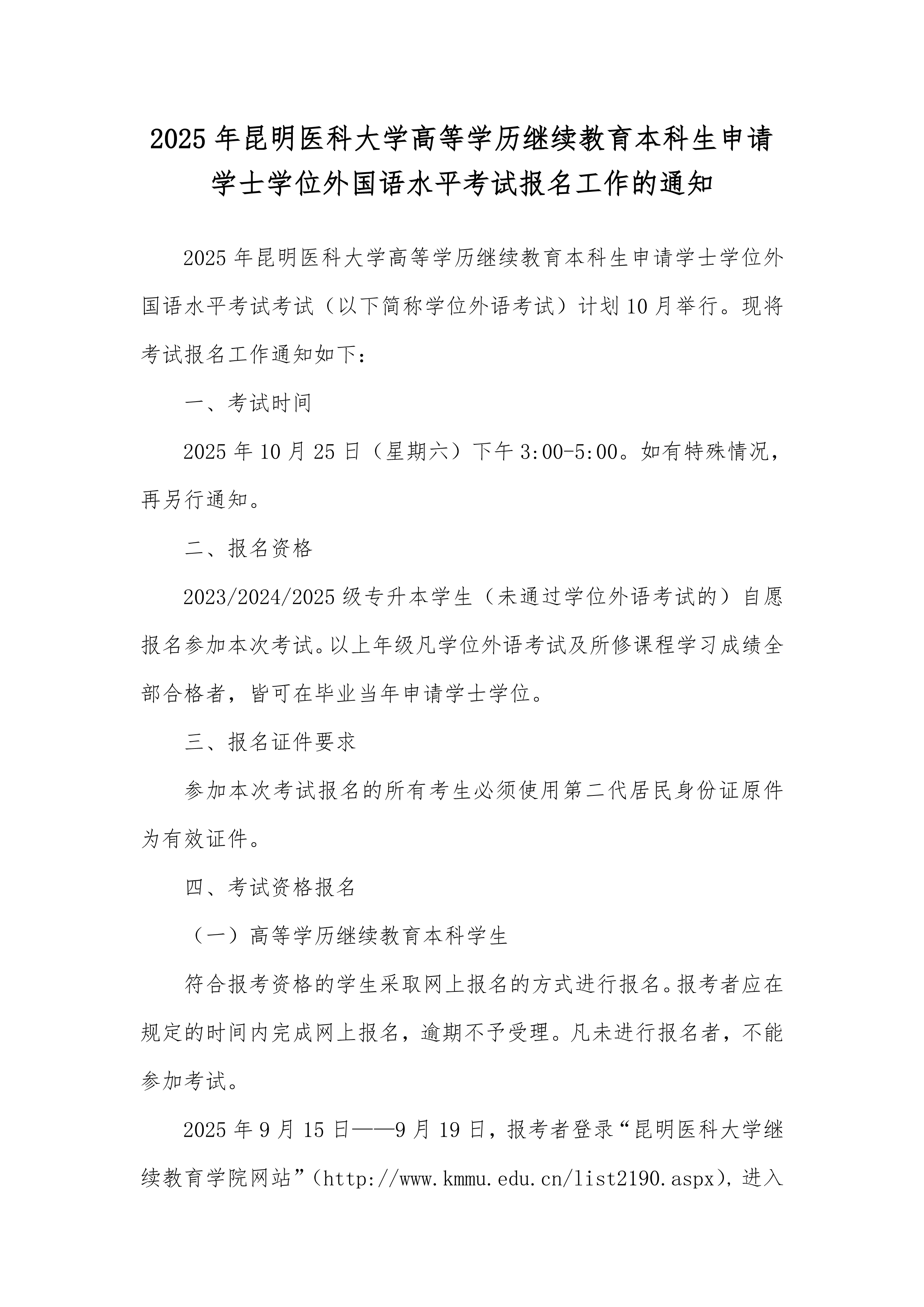 2025年伟德国际1949官网高等学历继续教育本科生申请学士学位外国语水平考试报名工作的通知