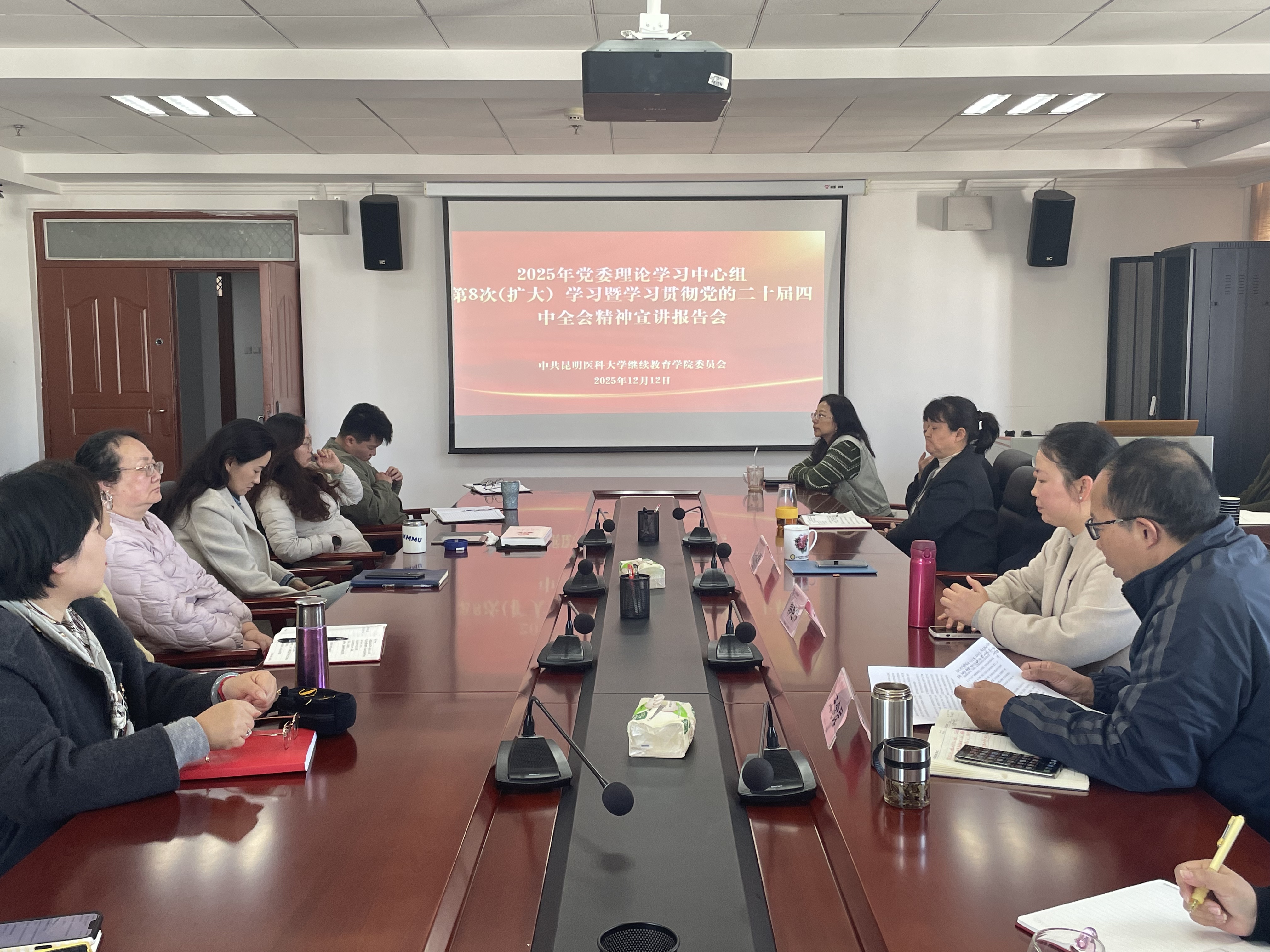 为深入学习宣传贯彻党的二十届四中全会精神,切实将全院教职工的思想和行动统一到全会决策部署上来,学院党委于12月12日召开2025年党委理论学习中心组第八次(扩大)学习会暨学习宣传贯彻党的二十届四中全会精神宣讲报告会。学院党委理论学习中心组成员全员出席,全体教职工列席参会。学院党委书记王念民主持报告会。
