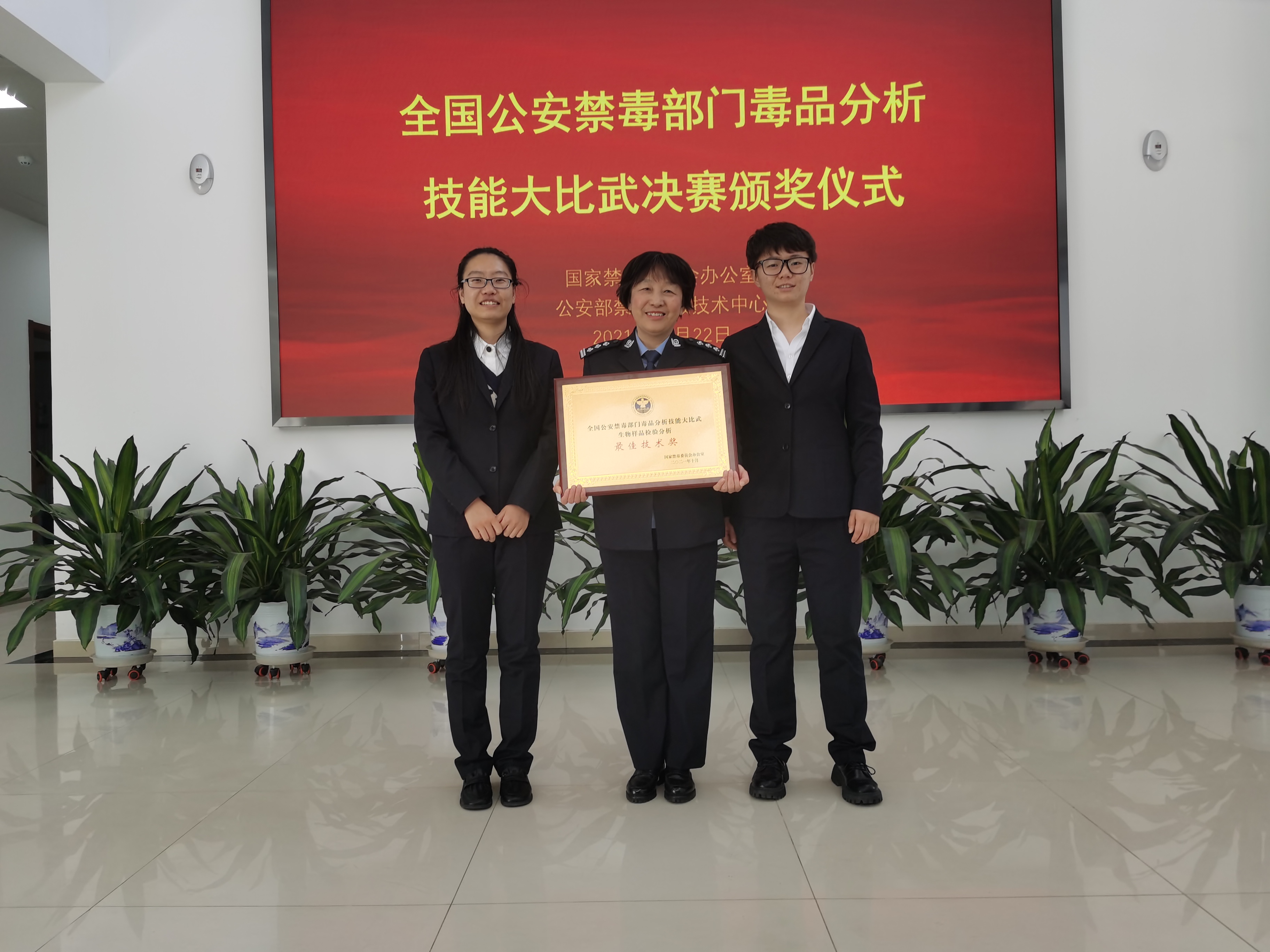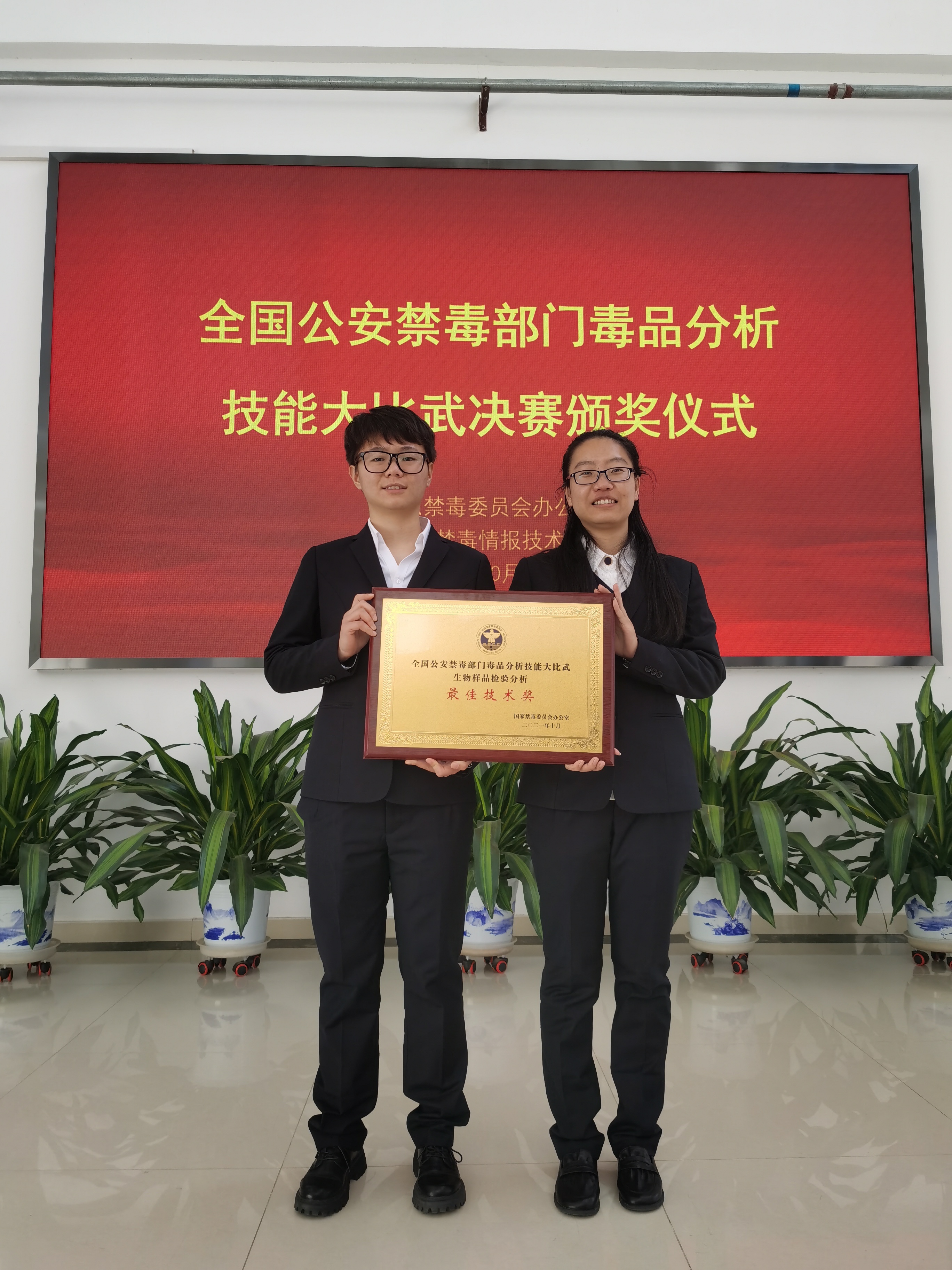 伟德国际1949官网法医学院法医毒物分析专业硕士研究生刘悦鑫、苏佳丽在云南省公安厅兼职研究生导师李虹主任法医师的带领与指导下,在国家禁毒委员会组织的全国公安禁毒部门毒品分析技能大比武中勇夺生物样品检验分析全国最高奖项“最佳技术奖”,为我省成功入围决赛并取得优异成绩作出了突出贡献。