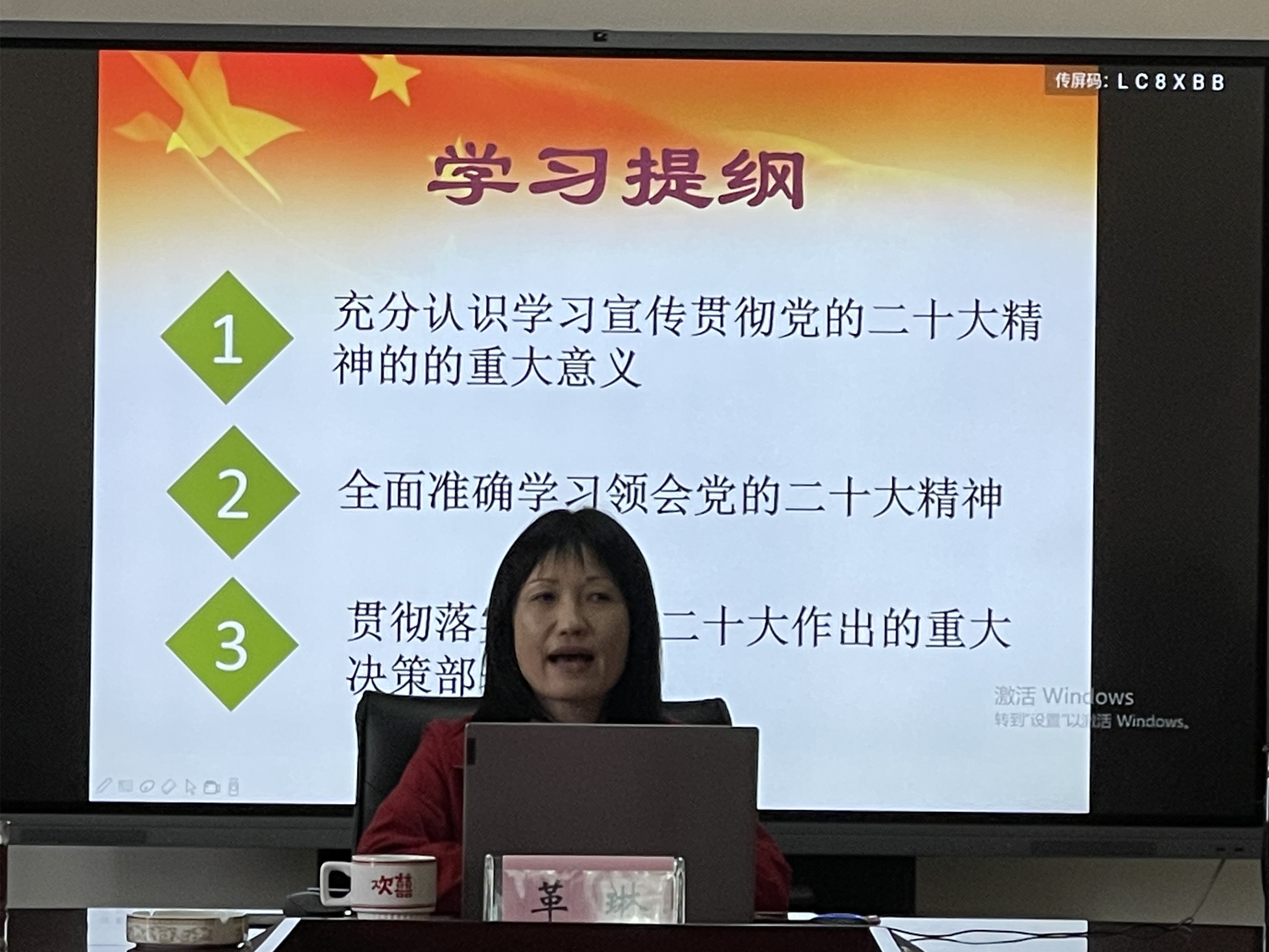 宣讲会上,革琳结合对大会精神所学所感所悟和自身丰富的党建工作实践,从“充分认识重大意义、全面学习领会、认真贯彻落实”三个方面,以通俗易懂的语言、具体详实的数据、生动鲜活的事例,对党的二十大精神进行了深入阐释和系统解读。