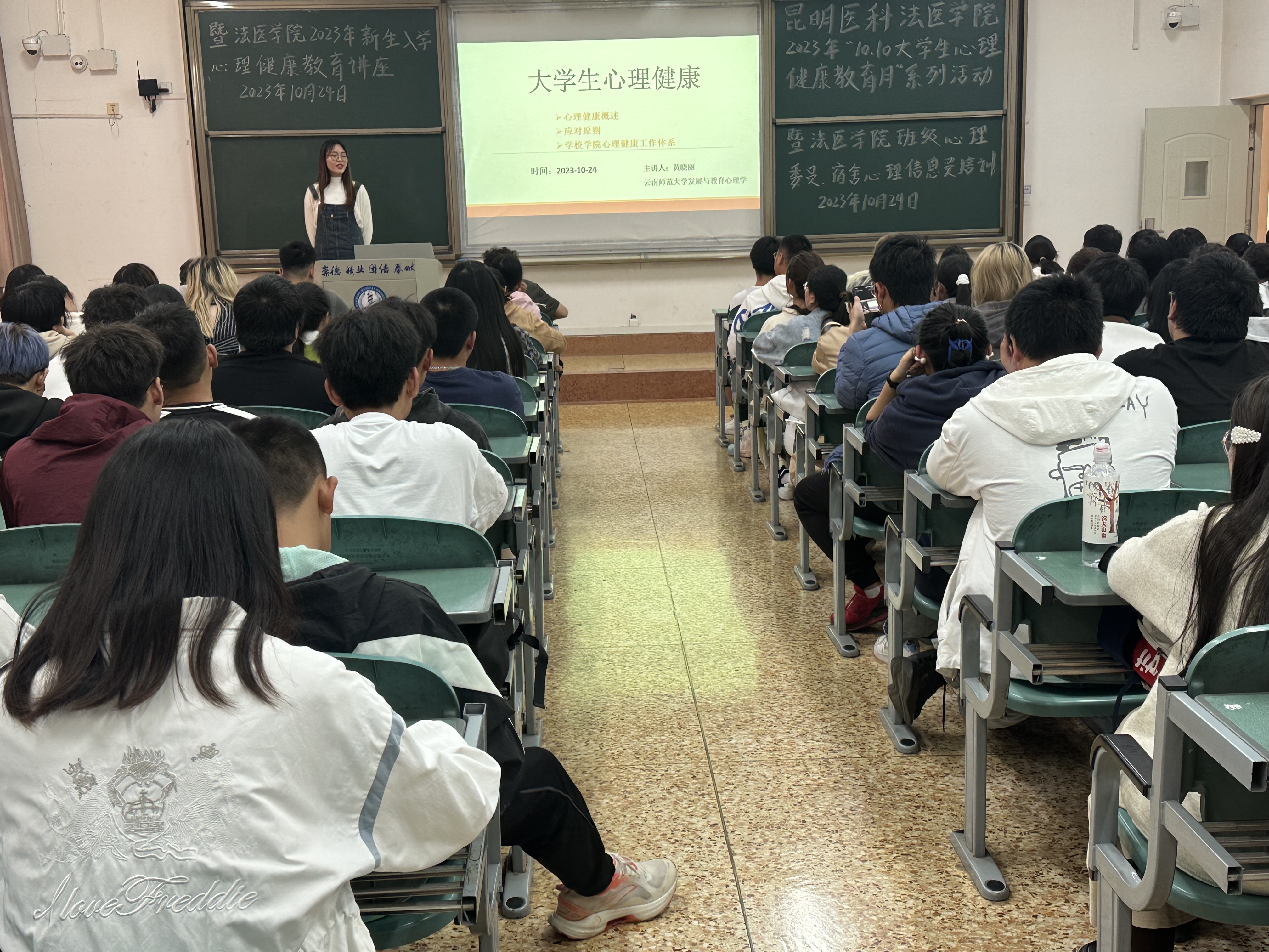 为进一步营造法医学院心理健康教育工作的良好氛围,提升心理育人质量,加强对学院心理工作站及心理委员队伍建设,根据《伟德国际1949官网关于开展2023年“10?10大学生心理健康教育月”活动的通知》要求及工作实际,法医学院于2023年10月24日在教学楼1109教室开展了班级心理委员、宿舍信息员“心理健康教育工作”专题培训,培训主讲人为学校心理咨询中心心理协助员黄晓丽老师,学院党委副书记卢蓉、团委书记申莹及呈贡校区各班心理委员、信息员共150余人参加培训。