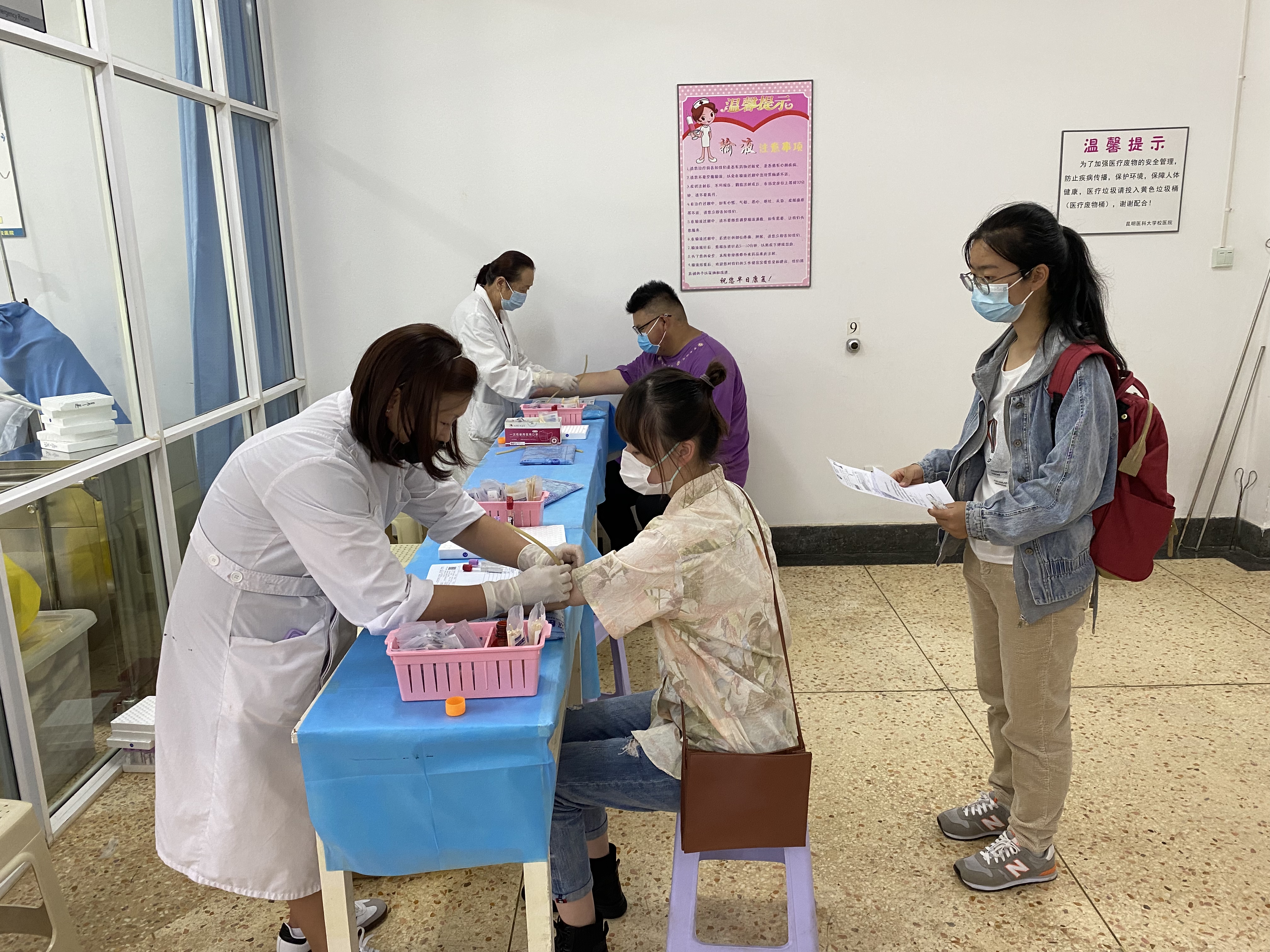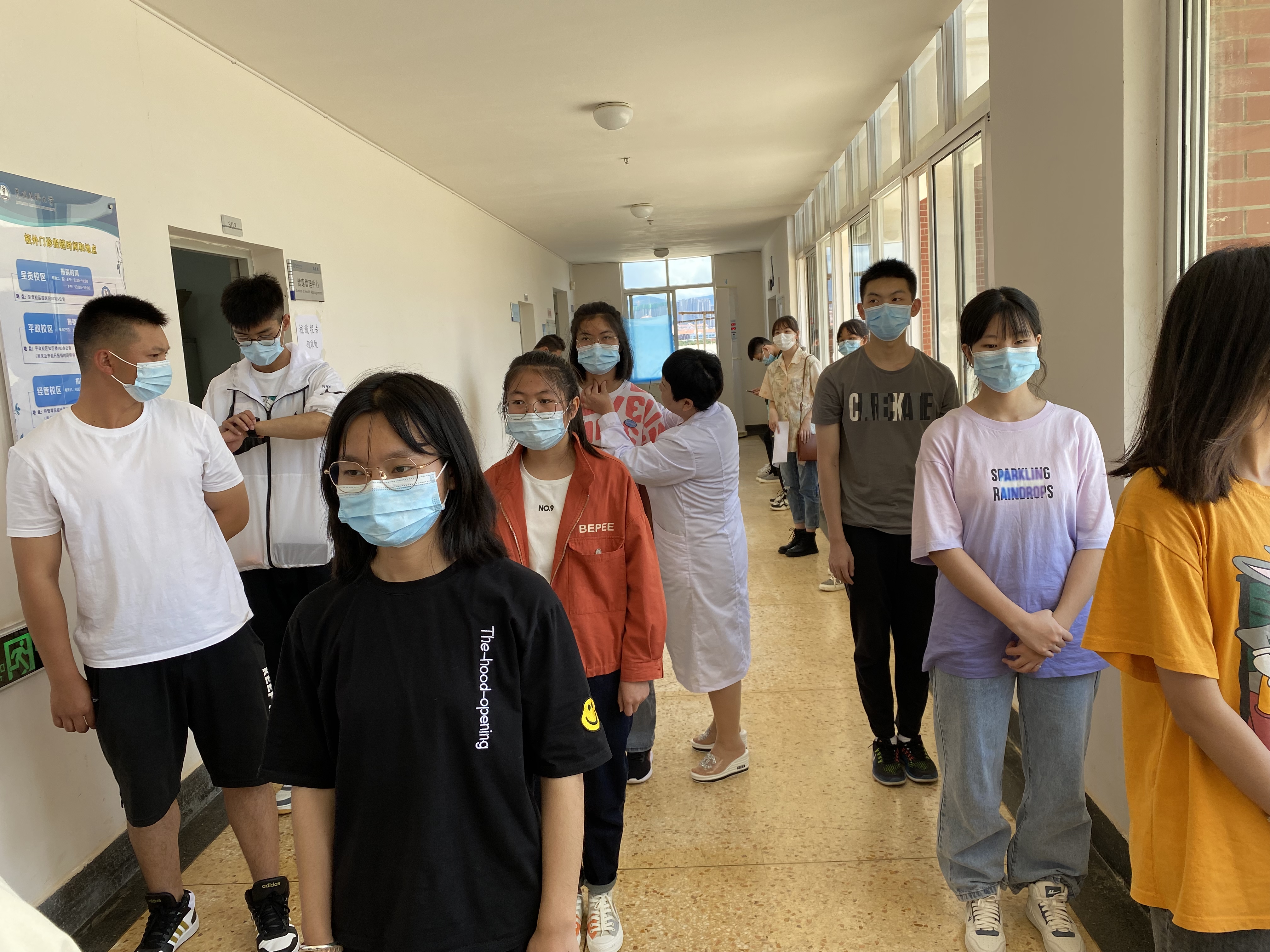 校医院全体医务人员热情、耐心、细致的给每一位同学做检查,并对体检的结果做了认真、详细登记记录,对体检异常同学给予立即追踪观察;在保证体检质量的同时,医院疫情防控工作不松懈,体检中要求同学都佩戴好口罩,做好个人防护,保持了一定的安全距离。