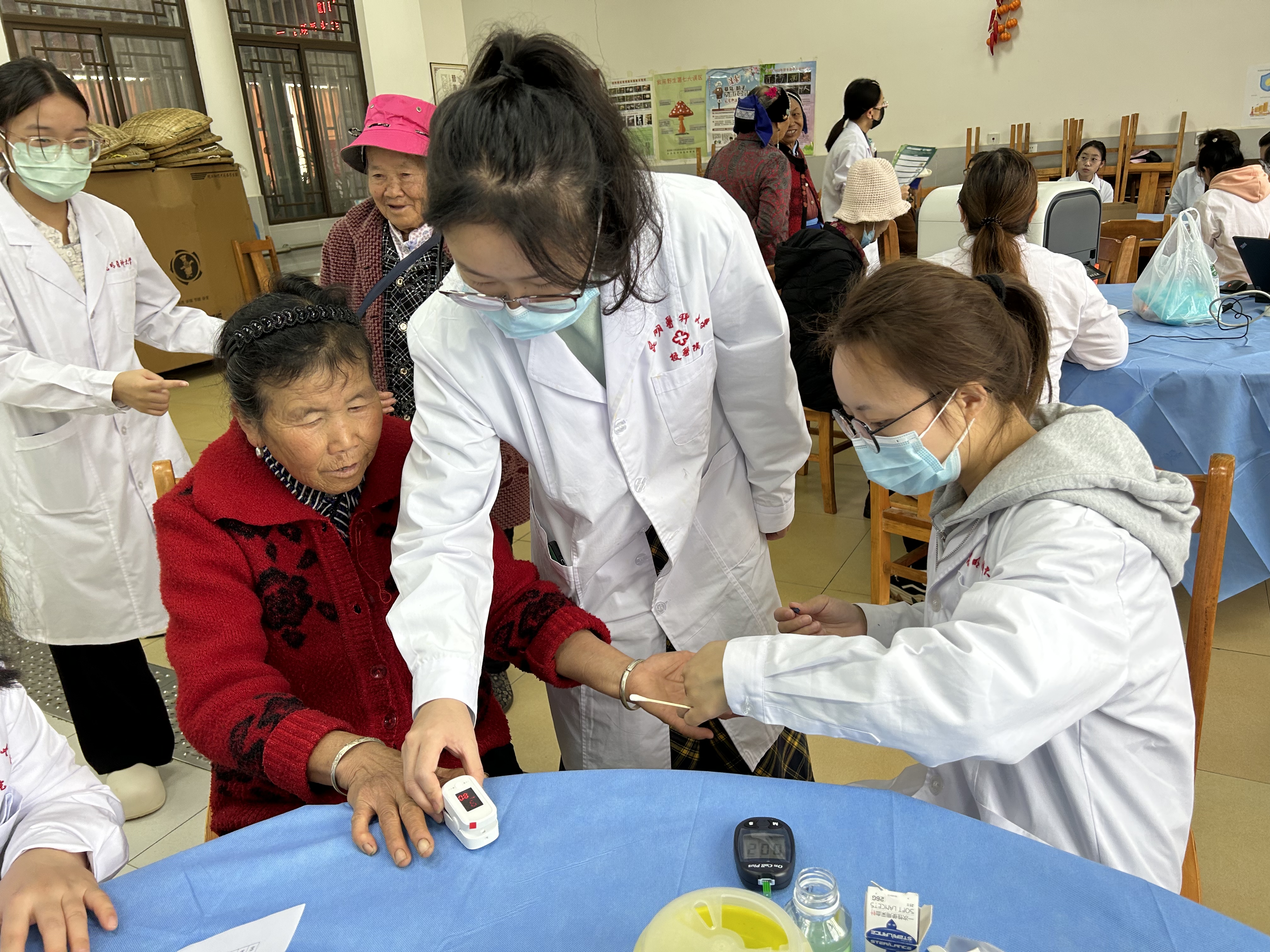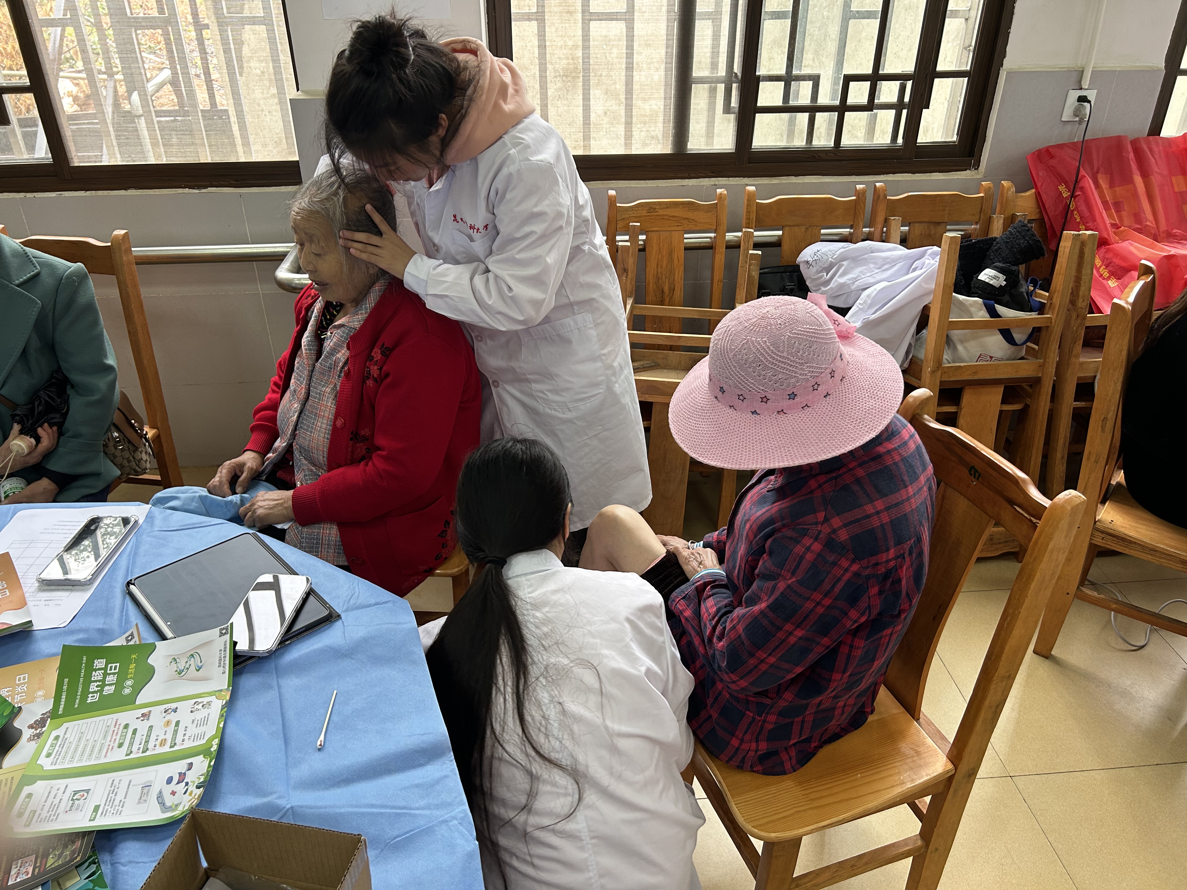2024年10月10日上午,在2024年重阳节之际伟德国际1949官网走进呈贡区洛龙社区开展以“关爱老人 共筑健康”为主题的爱心义诊活动,旨在帮助社区居民了解和预防疾病,提高健康意识及水平。校医院参与义诊活动。