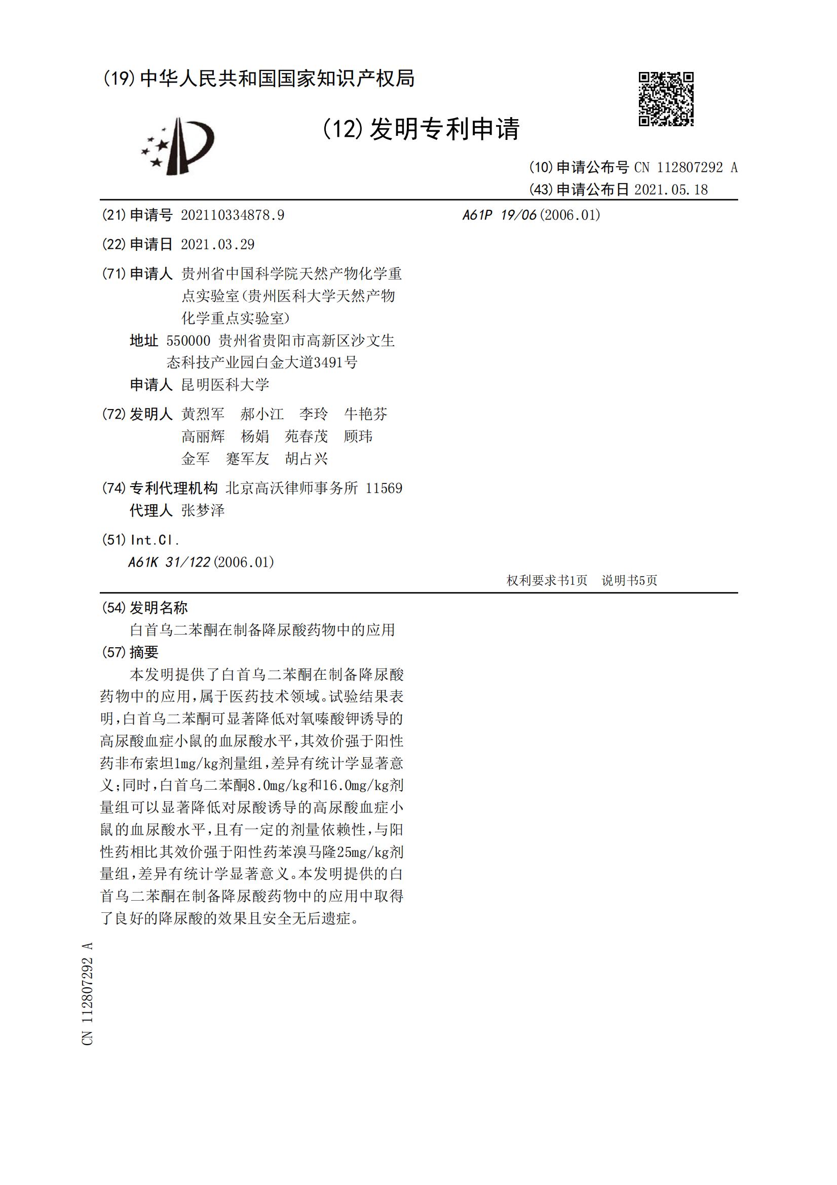 白首乌二苯酮在制备降尿酸药物中的应用