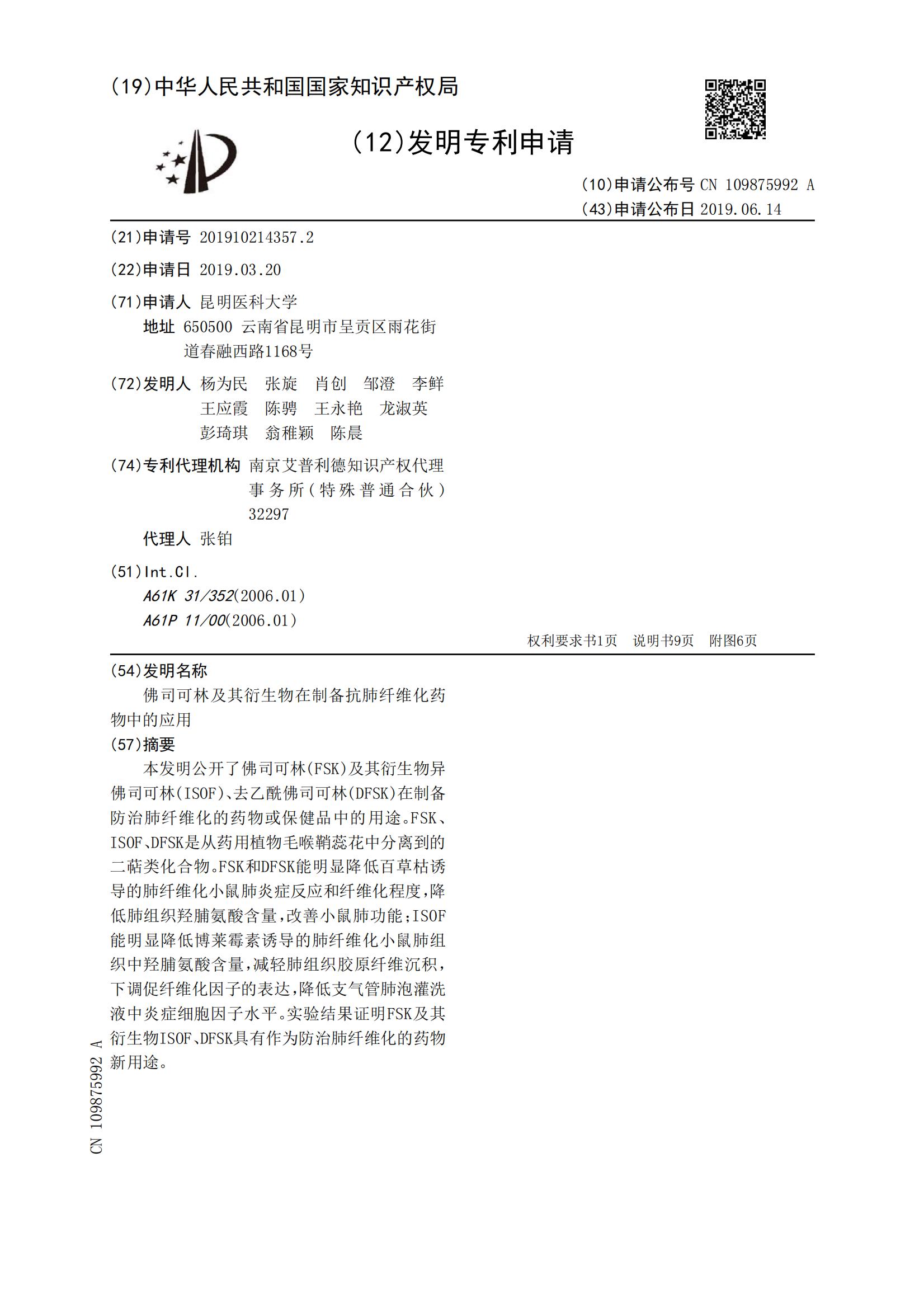 佛司可林及其衍生物在制备抗肺纤维化药物中的应用