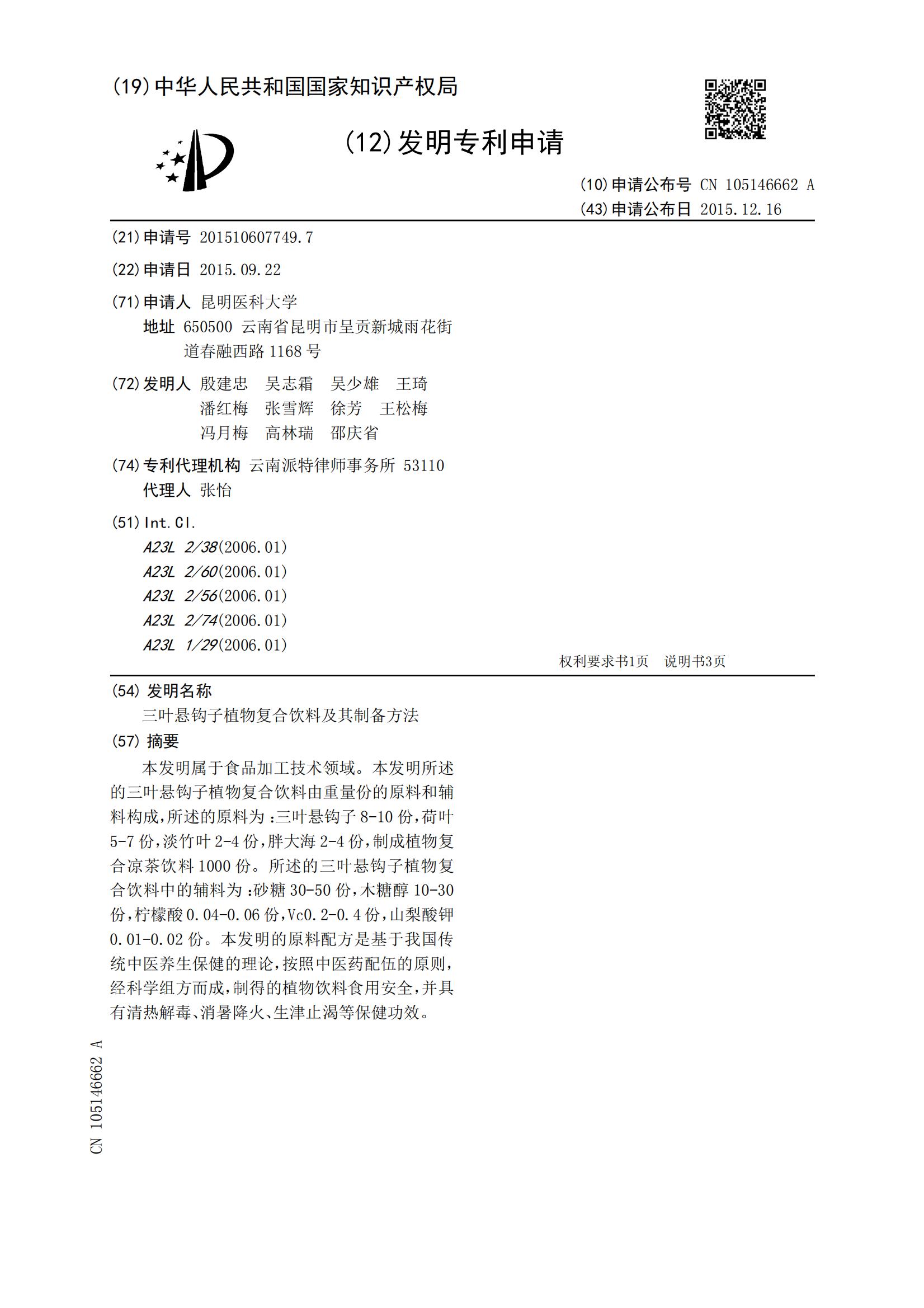 三叶悬钩子植物复合饮料及其制备方法