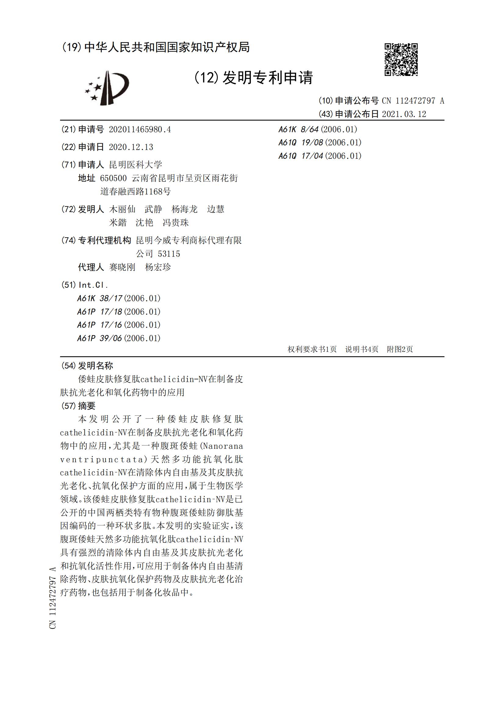 倭蛙皮肤修复肽cathelicidin-NV在制备皮肤抗光老化和氧化药物中的应用