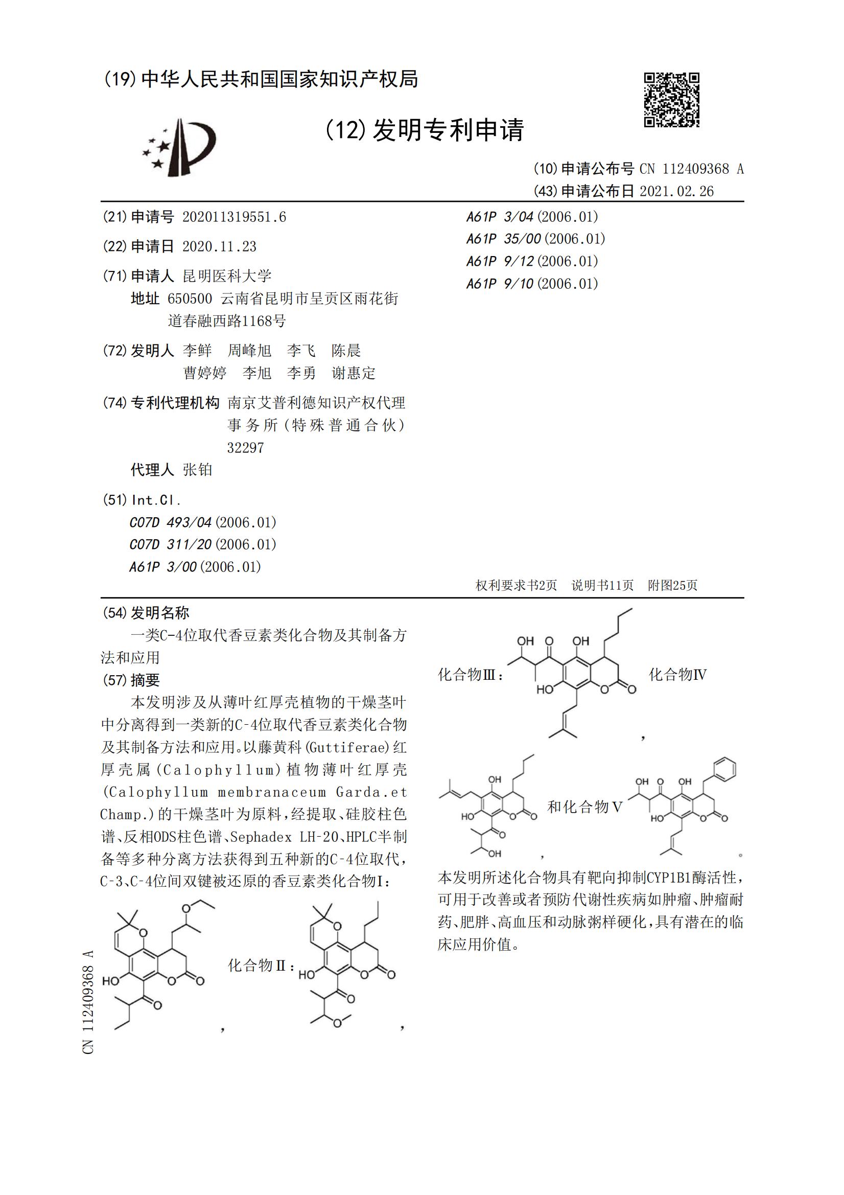 一类新的4-苯基取代香豆素类化合物及其制备方法