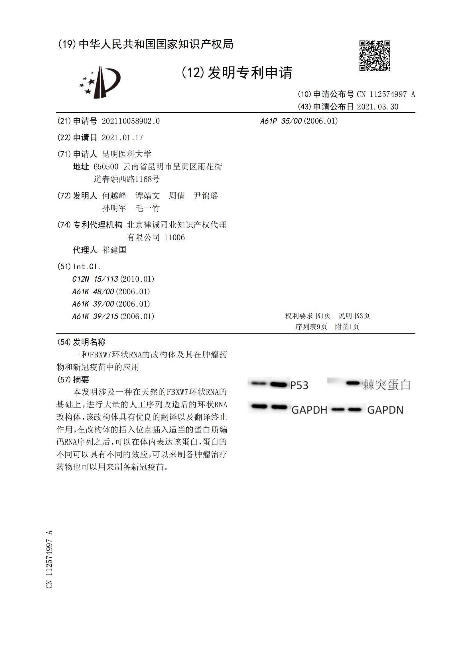 一种FBXW7环状RNA的改构体及其在肿瘤药物和新冠疫苗中的应用