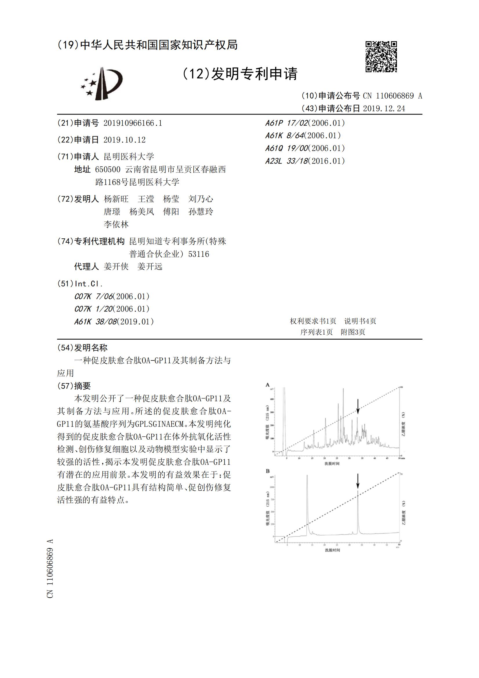 一种促皮肤愈合肽OA-GP11及其制备方法与应用
