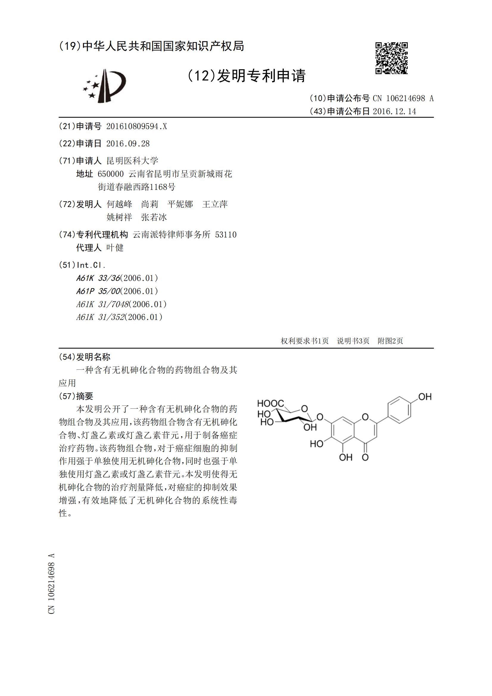 一种含有无机砷化合物的药物组合物及其应用CN106214698A