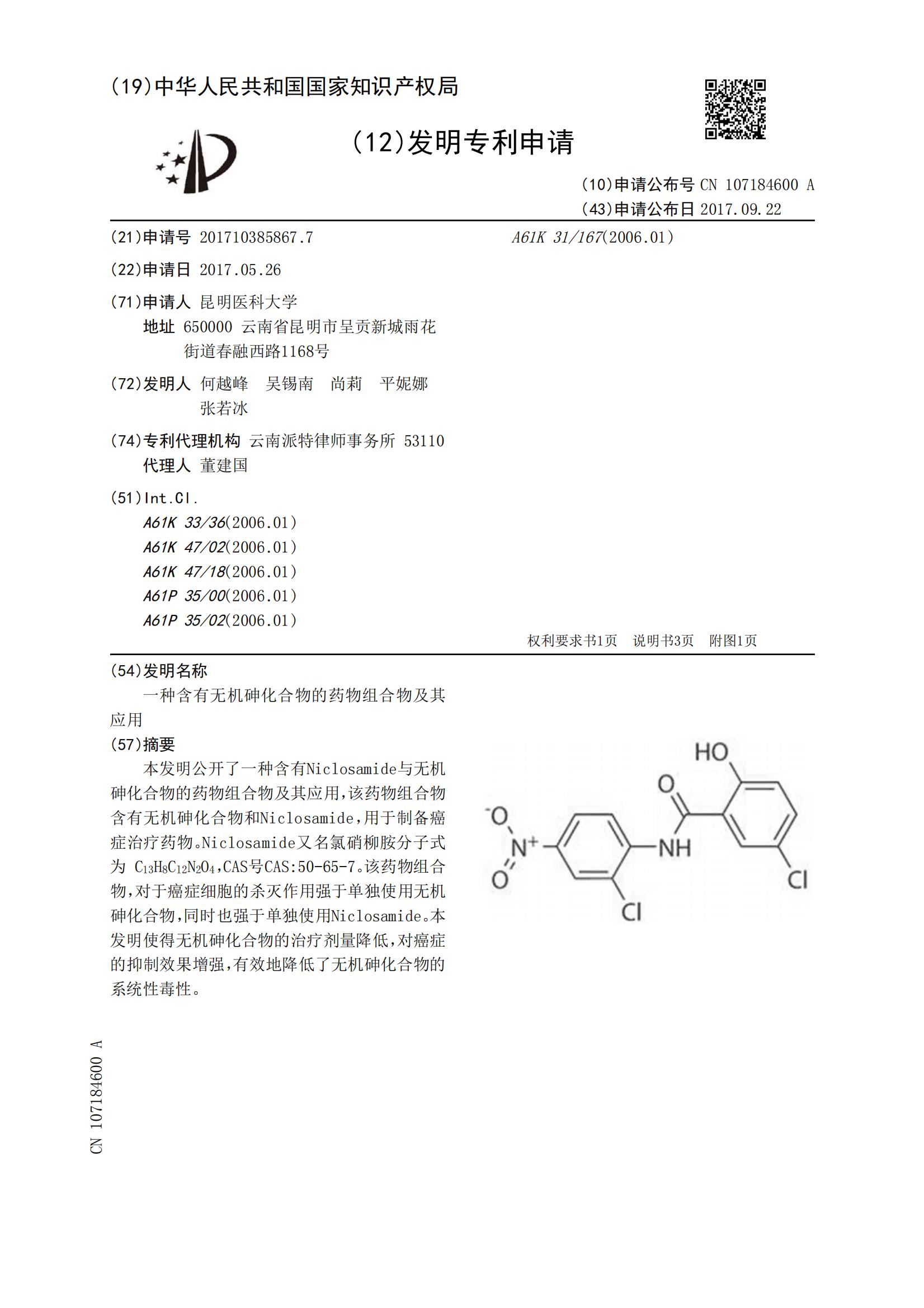 一种含有无机砷化合物的药物组合物及其应用CN107184600A