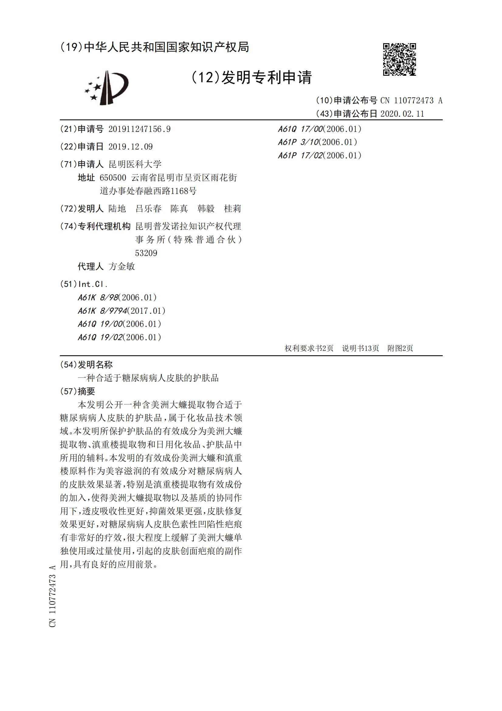 一种合适于糖尿病病人皮肤的护肤品