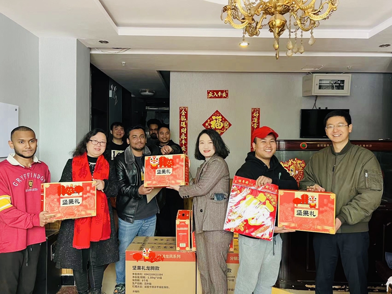 玉兔辞旧岁,金龙送春来。2月3日上午,在中国农历龙年即将到来之际,国际教育学院和对外合作交流处负责人及相关教师分别前往呈贡校区、市区留学生集中住宿点及公寓慰问在校留学生,为他们送去温馨的春节祝福和新年礼物。