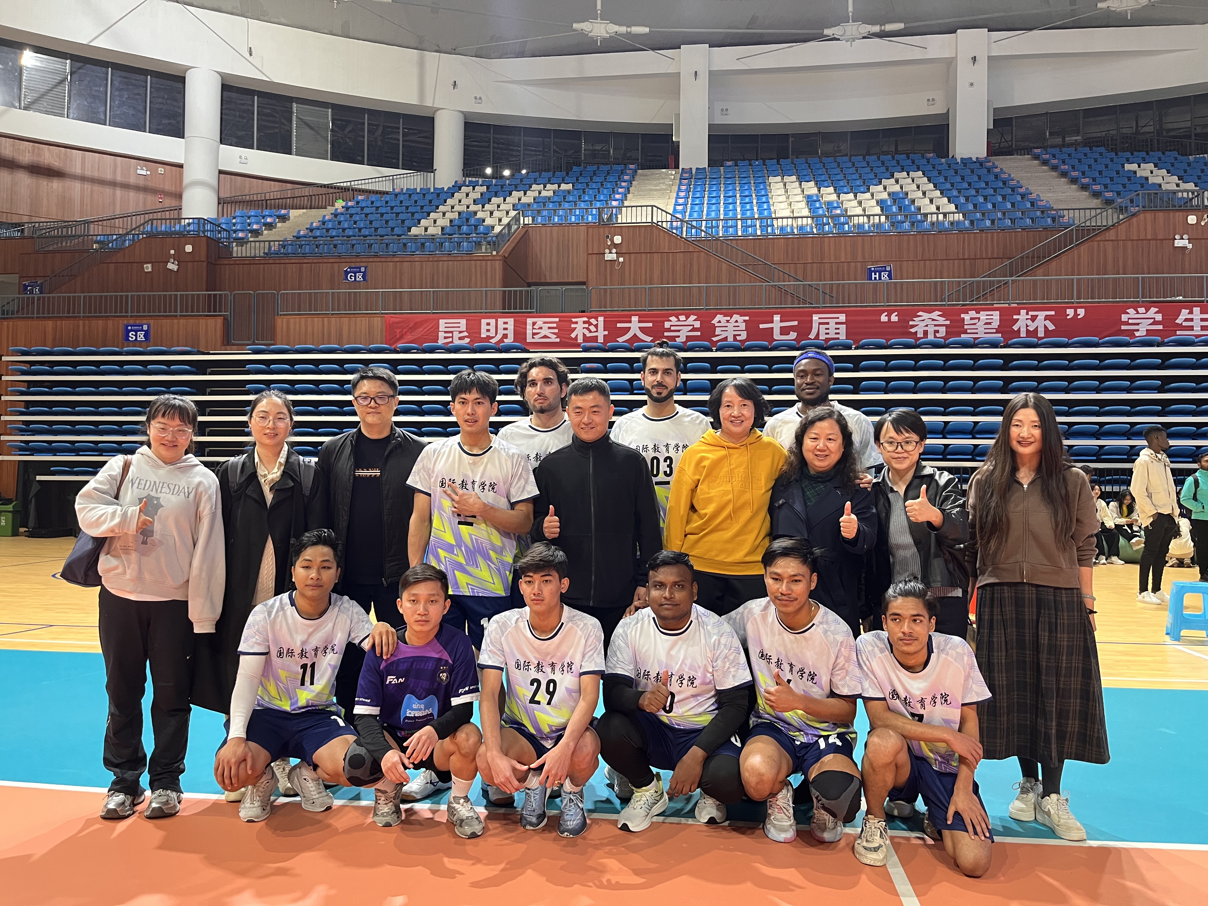 2024年10月23日,伟德国际1949官网第七届“希望杯”学生排球赛圆满落幕。国际教育学院组织男队、女队各12名队员参加了此次比赛,经过10天激烈的比拼,最终我院留学生喜获本次“希望杯”学生排球赛男子组亚军,女子排球队也取得了较好的成绩。