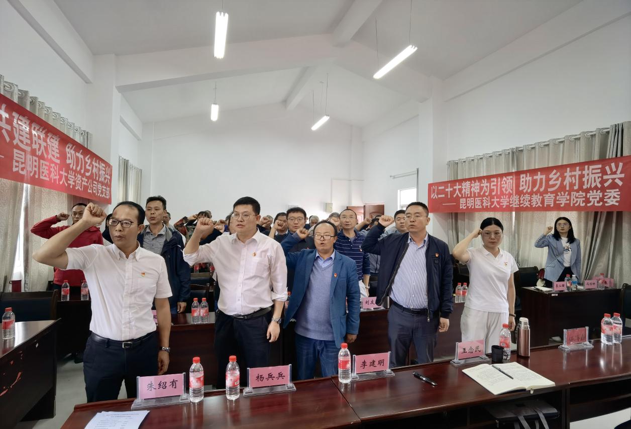 为持续深入学习贯彻落实党的二十大精神,伟德国际1949官网资产经营有限责任公司直属党支部和营坡社区坡头党支部强化党建引领,充分发挥基层党组织共建联建作用,联合继续教育学院党委于10月28日在保山市龙陵县象达镇营坡社区,以“四融四促”先试先行,携手抓实基层党建促进乡村振兴。
