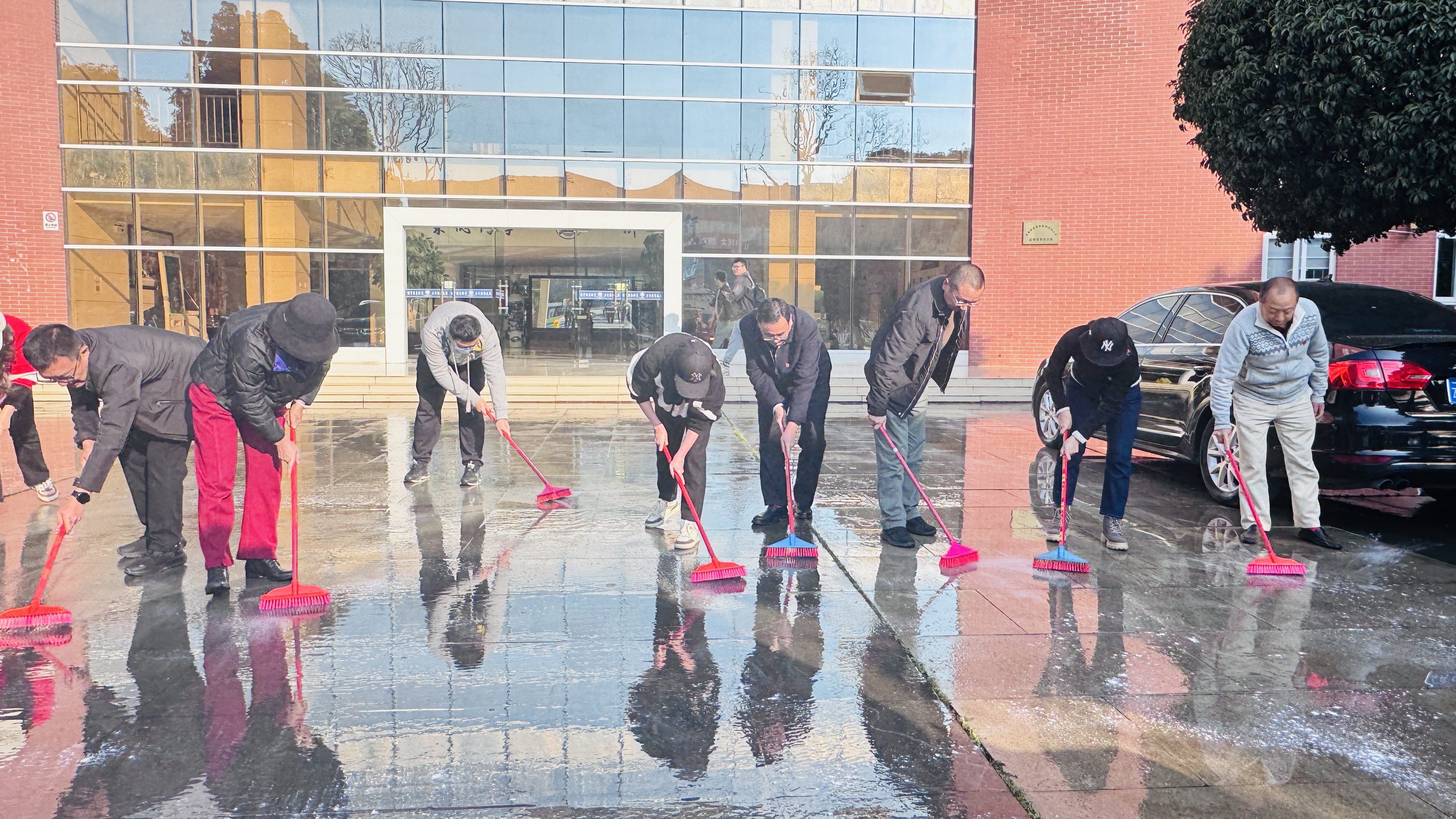 活动当天,党员们热情高涨,在公司党政领导的带领下,积极对校园主干道进行了清扫,为迎接新的学期做好了充足的准备。