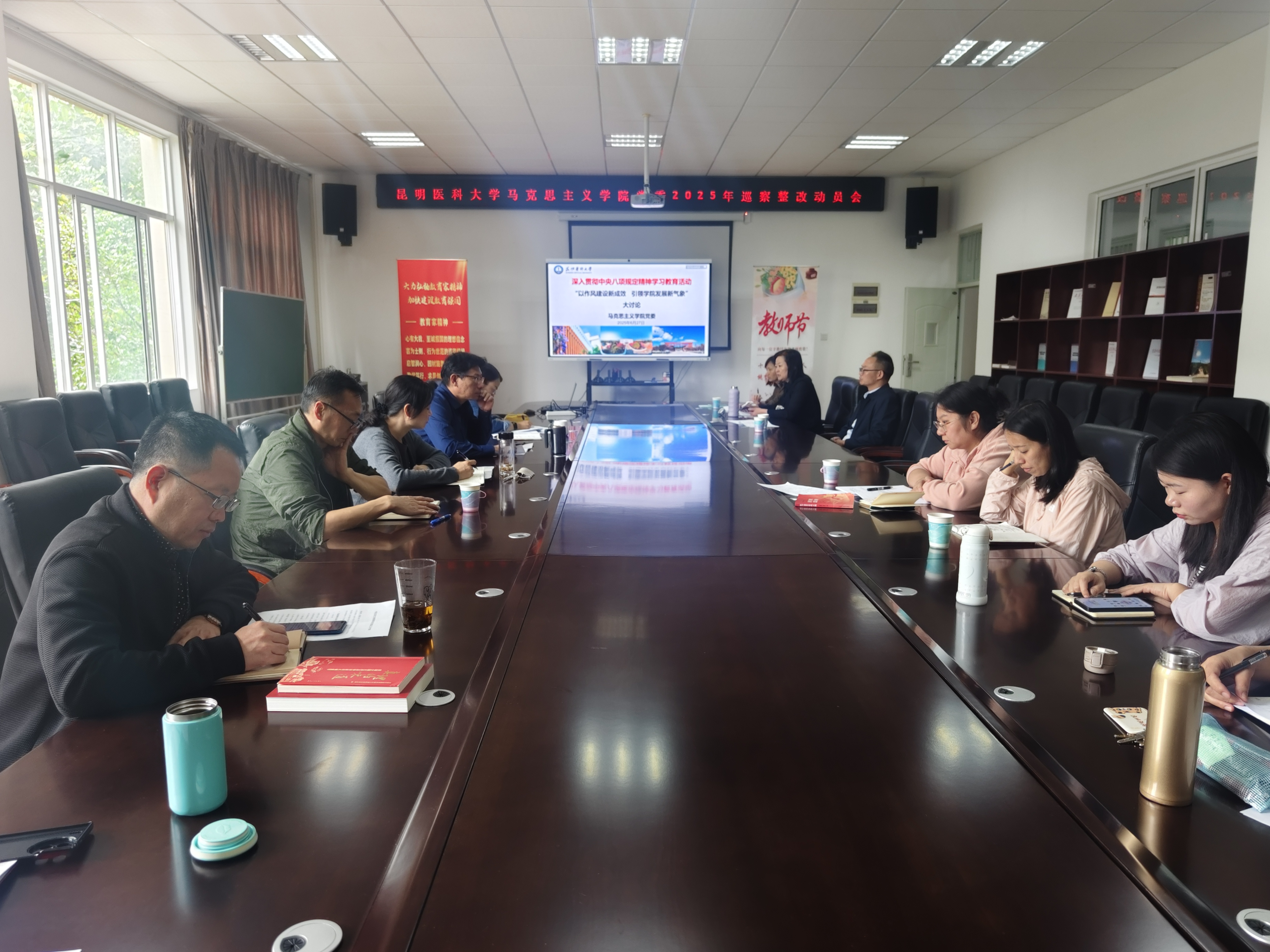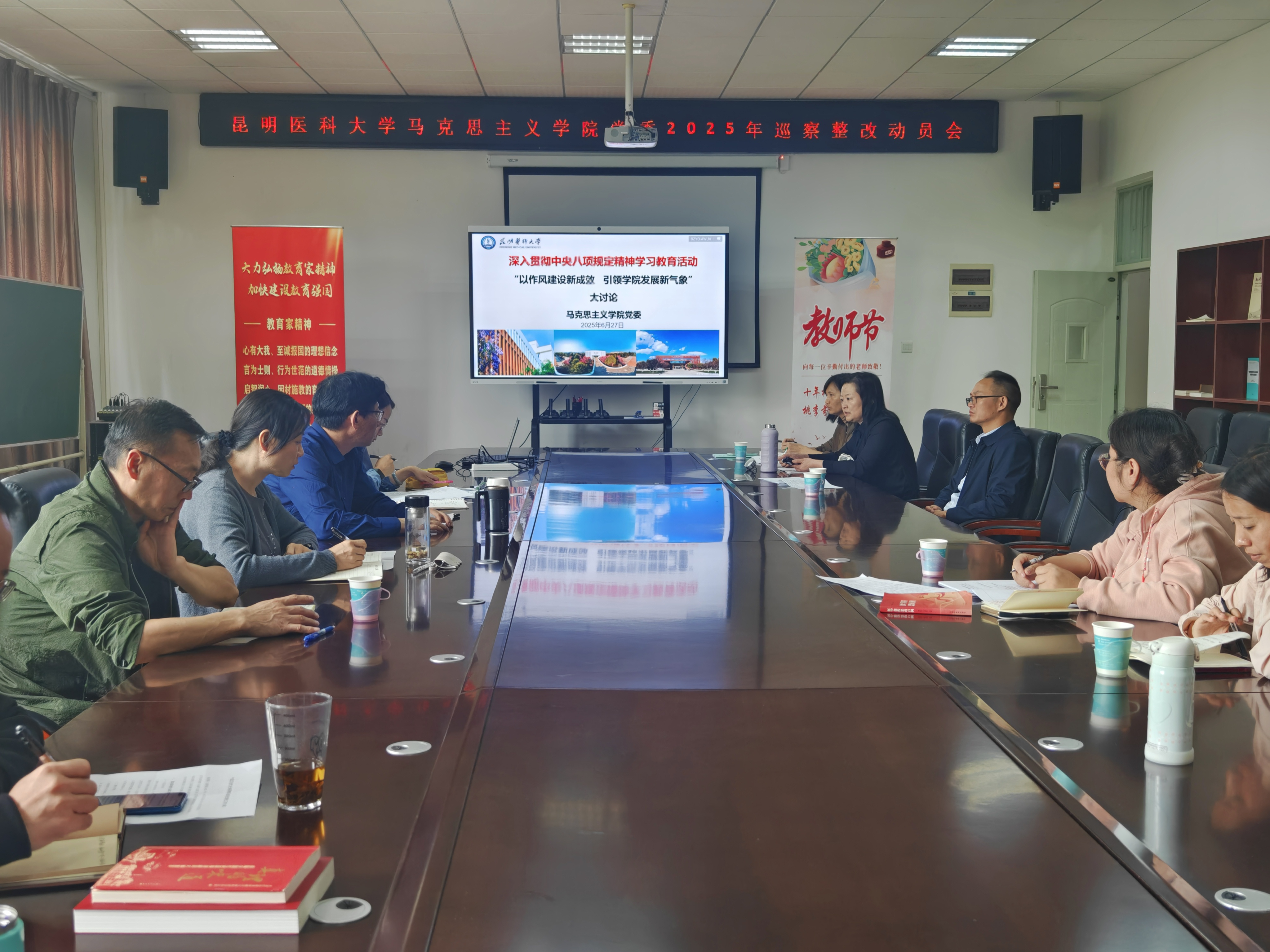 为深入贯彻中央八项规定精神学习教育,切实抓好学校巡察组反馈问题整改,推动巡察“后半篇文章”走深走实、落地见效。6月27日上午,马克思主义学院开展了“以作风建设新成效引领学院发展新气象”的大讨论活动。