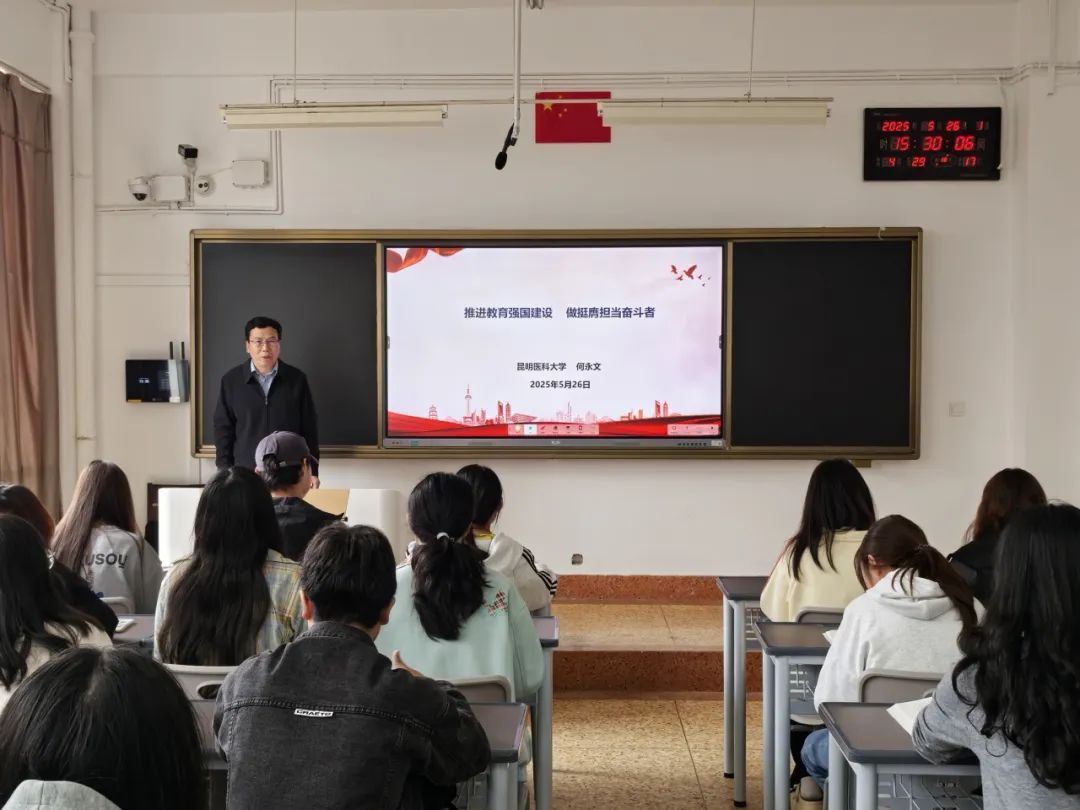 2025年5月26日,学校党委常委、副校长何永文走进2024级药物制剂班,为同学们带来了一堂内容丰富的“习近平新时代中国特色社会主义思想概论”课。