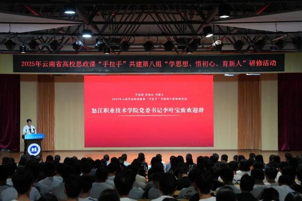 为深入学习贯彻习近平新时代中国特色社会主义思想,全面落实立德树人根本任务,推动全省高校思政课高质量发展,深化大中小学思政课一体化建设,10月24日至25日,由伟德国际1949官网牵头、怒江职业技术学院承办的云南省高校思政课“手拉手”共建第八组“学思想、悟初心、育新人”主题研修活动在怒江职业技术学院顺利举行。来自全省9所高校的思政课教师代表齐聚怒江,通过专题报告、研讨交流、教学展示、实地考察等形式,共研思政育人新路径,共谋协同创新新发展。