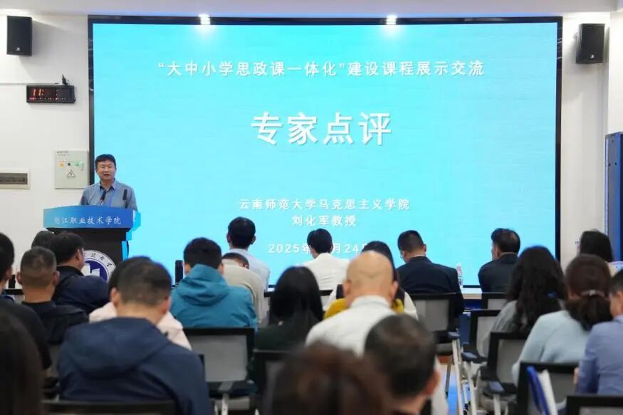 展示结束后,云南师范大学马克思主义学院刘化军教授作了专业点评,充分肯定各学段教师在教学目标设定、内容衔接、方法创新等方面的积极探索,并提出深入推进大中小学思想政治教育一体化建设的建议。