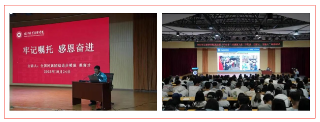 开幕式结束后,全国民族团结进步模范个人桑南才以“牢记嘱托 感恩奋进”为题,分享了他在基层一线坚持送信服务群众37年、促进民族团结,把邮路建成传递党的声音的连心路,增进民族团结、铸牢中华民族共同体意识的同心路和连接人民美好生活的幸福路的实践与感悟。随后,“溜索女孩”余燕恰作了题为“从溜索到大桥,我的医路归来”的主旨报告,分享了自己在党和政府关怀、社会帮助下,从“溜索求学”的山区女孩成长为人民医生的人生历程。“是国家给了我走出大山的机会,我也要把所学带回大山,服务家乡人民。”她用真挚的话语生动诠释了“奋斗改变命运,感恩成就人生”的深刻内涵。他们为在场教师提供了鲜活、接地气的思政教育素材。