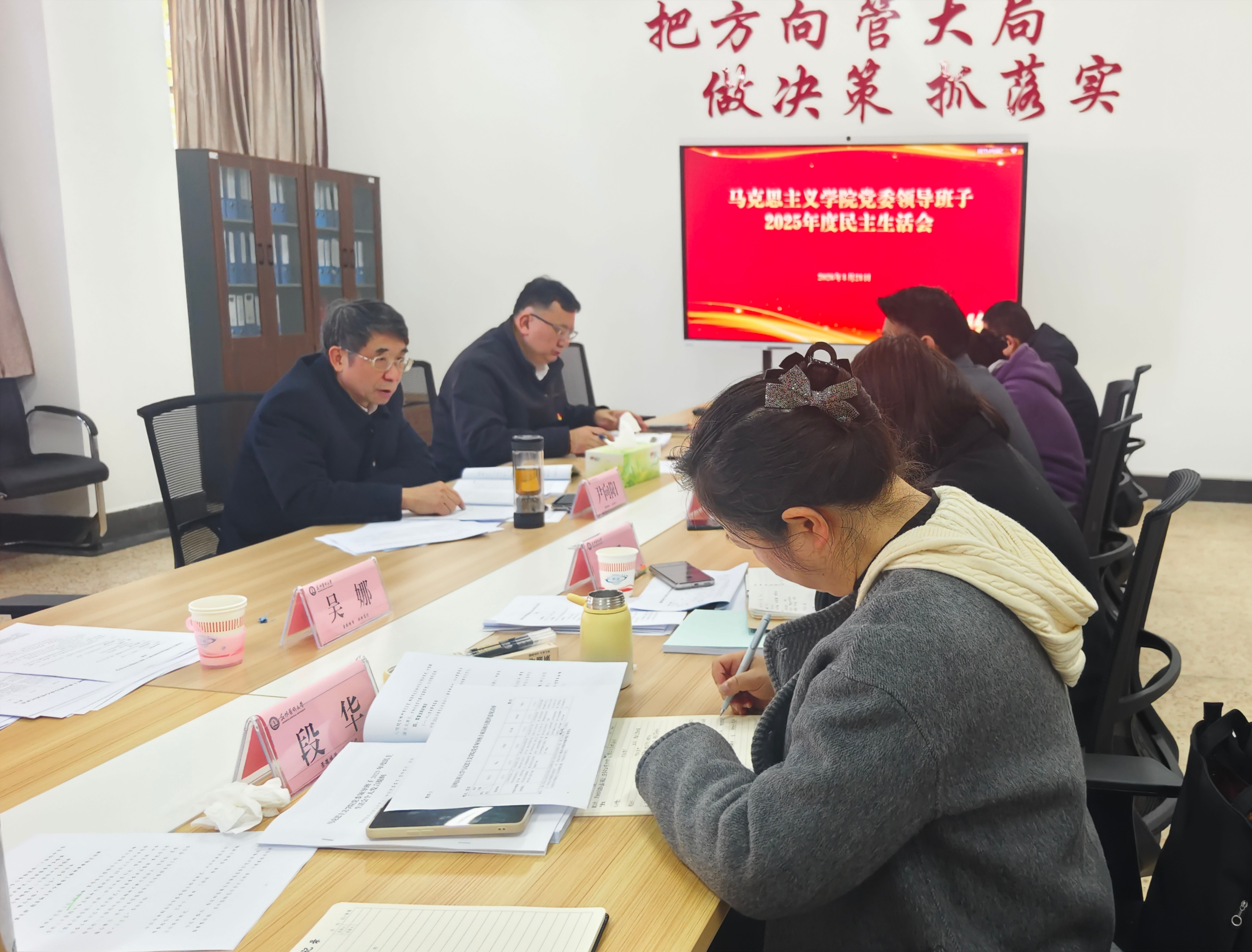 1月21日,马克思主义学院党委领导班子在学院109会议室召开2025年度民主生活会。学校党委书记尹向阳、学校党委第一督导组组长赵宇、督导组成员吴娜到会指导。学院党委书记、院长徐庆生主持会议,学院党委领导班子全体成员参加会议。