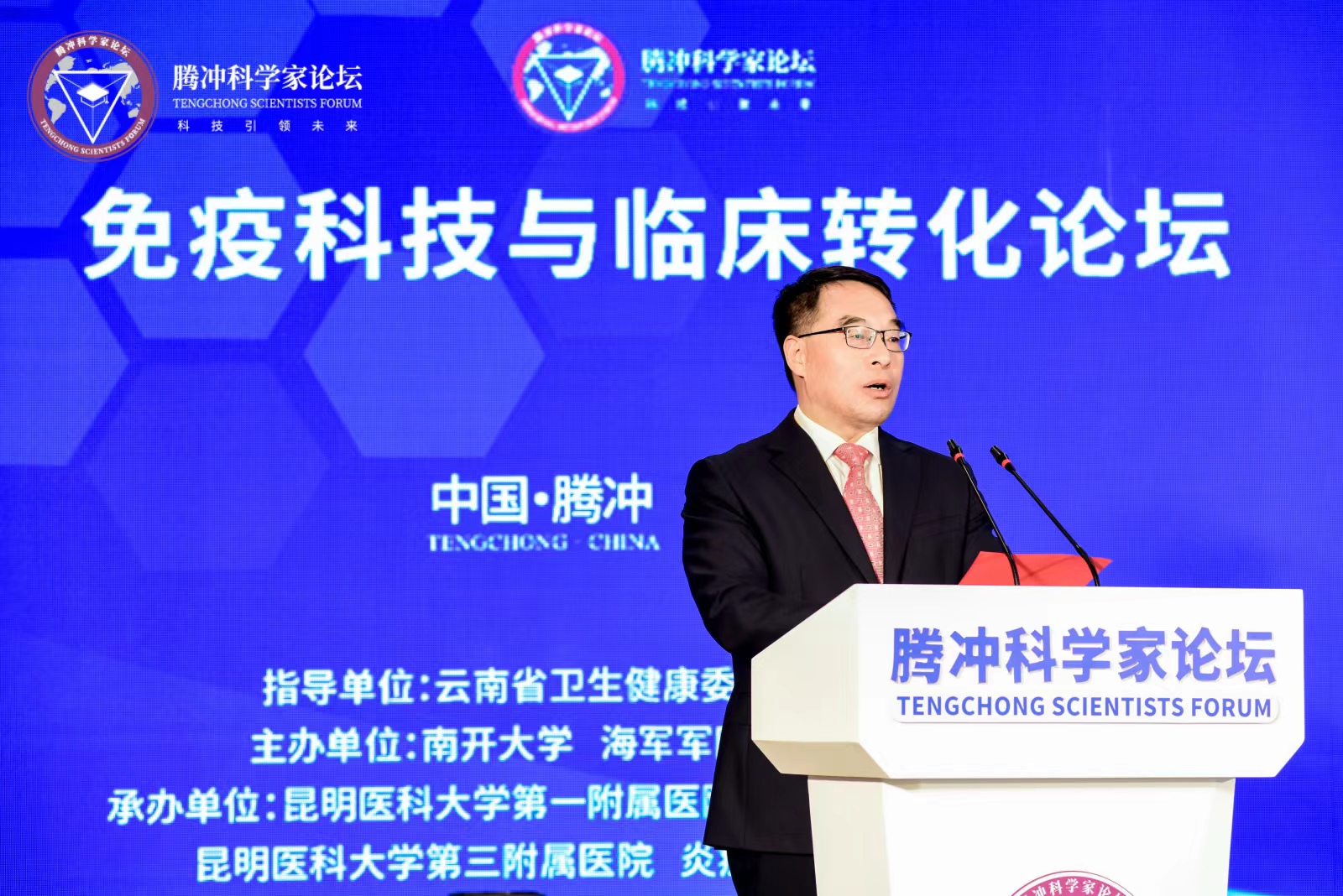 王学勤在致辞中指出,省委、省政府坚持把卫生健康工作摆在优先位置来抓,树牢“大卫生、大健康”理念,锚定“3815”战略发展目标。免疫科技与临床转化分论坛是腾冲科学家论坛中极具含金量的论坛,希望全体专家学者为云南的医学科学、卫生健康事业发展提供更多的思路和解决问题的路径,加强对伟德国际1949官网等云南高校和医疗机构的指导帮助,共同为健康中国、健康云南建设贡献更多智慧与力量,同时也期望以本次论坛为窗口,推动各方资源与云南省相关教育、科研、医疗机构和企事业单位开展更为广泛和深入的合作。