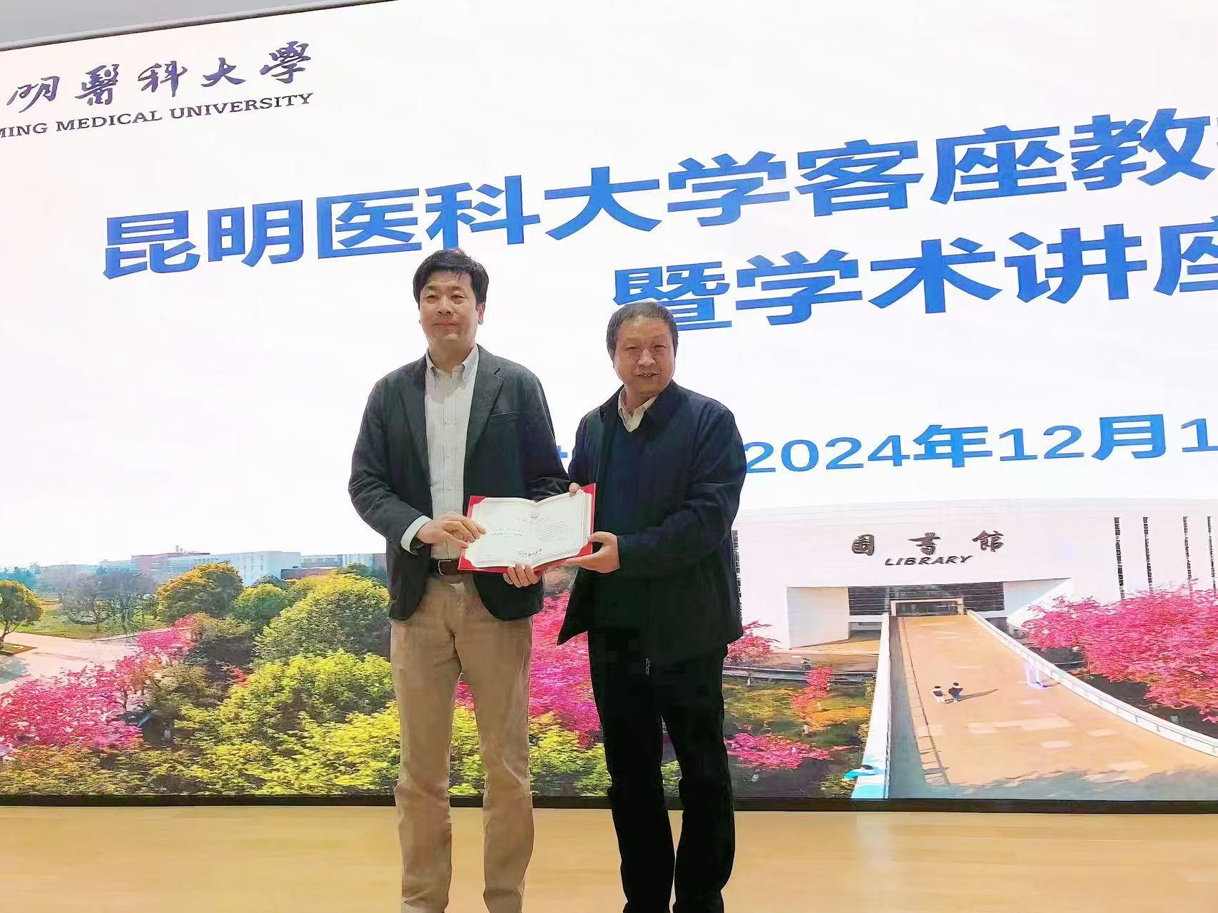 11月14日,在第二学术报告厅校长夏雪山教授致辞并向来自清华大学的程功教授颁发了伟德国际1949官网客座教授聘任证书。夏雪山介绍了程功在蚊媒病毒感染机制与抗病毒免疫研究方面的卓越成就,强调其加盟我校,必将对我校乃至云南省登革热防控事业做出巨大贡献。
