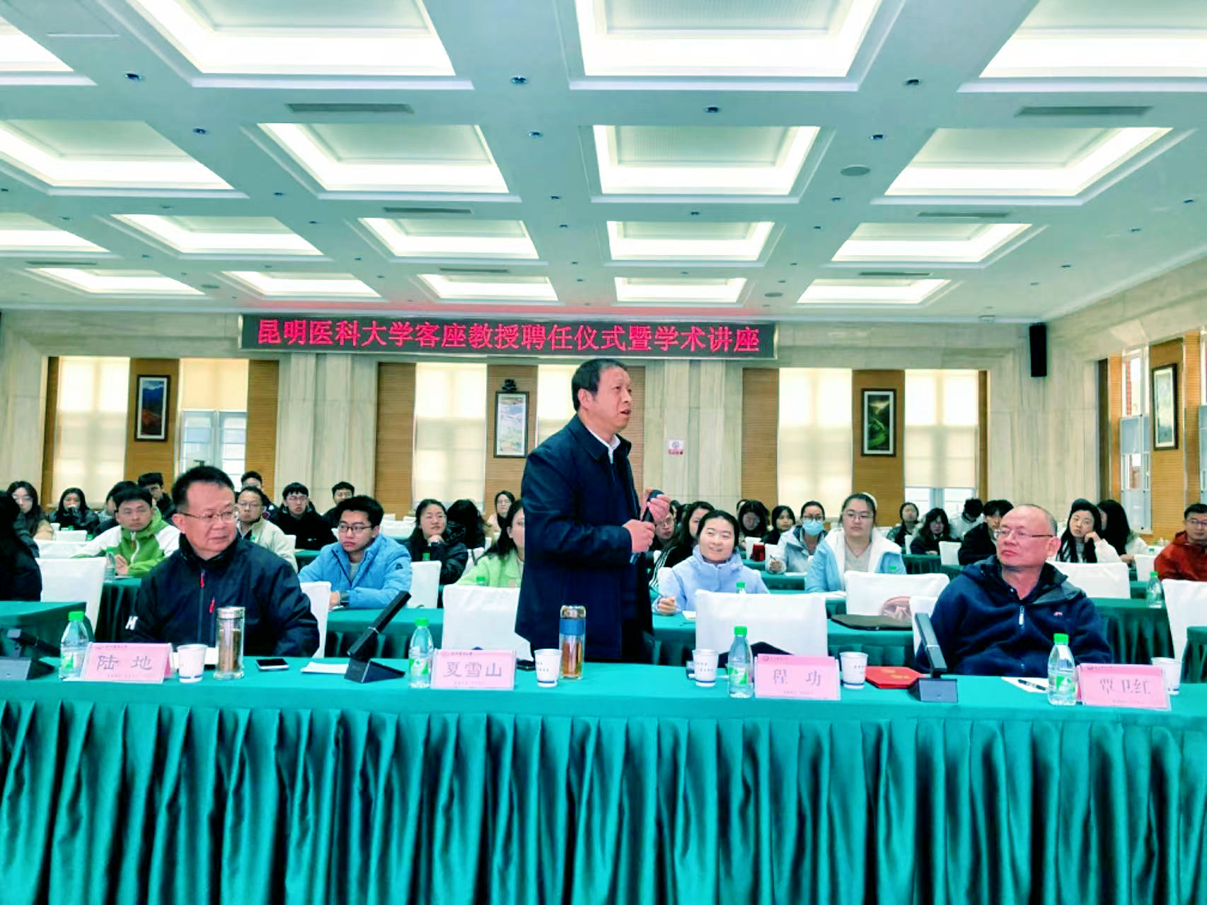 接着,程功作为我校教授为学校师生带来关于蚊媒病毒感染与传播为主题的首次学术讲座。伟德国际1949官网副校长陆地教授、云南国际旅行卫生保健中心(昆明海关口岸门诊部)覃卫红主任、科技处副处长杨海龙教授及云南省公共卫生与生物安全重点实验室师生百余名参加。