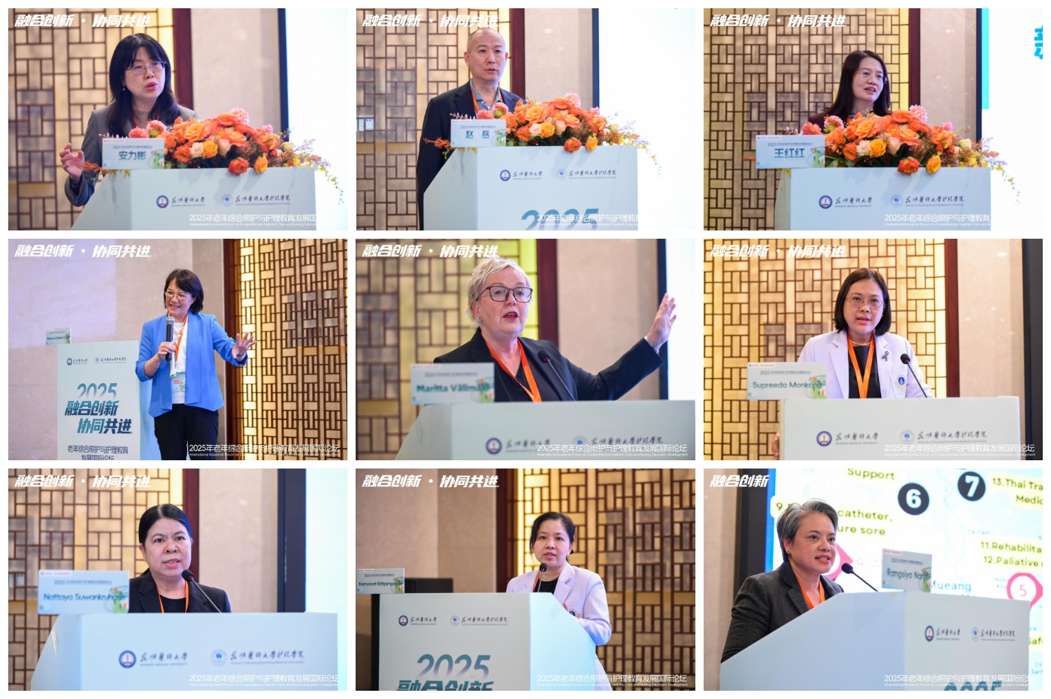 教育部高等学校护理学类专业教学指导委员会秘书长、北京大学教授孙宏玉,国务院学位委员会第八届学科评议组护理学组秘书长、中南大学教授唐四元,美国耶鲁大学教授Xiaomei Sophia Cong、芬兰赫尔辛基大学教授Maritta V?lim?ki、泰国玛希隆大学教授Supreeda Monkong与Kamonrat Kittipimpanon等国内外知名学府和权威机构的专家代表齐聚一堂,分享了各国在老年综合照护和护理教育领域实践的宝贵经验。