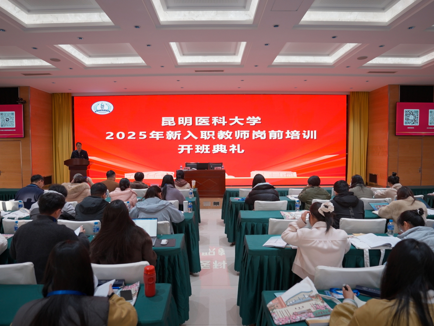 本次培训充分整合了校内多部门与校外优质教育资源,内容系统全面、形式丰富立体。围绕角色转换、教学科研、职业发展、师德修养、校情认知等维度精心设计培训内容。在为期5天的培训中,新入职教师不仅聆听了校领导关于政治素养、学校发展与科研申报的专题授课,还系统学习了来自党委统战部、教务处、研究生处、科学技术处、对外合作交流处、财务处、保卫部(处)等部门负责人带来的统战工作、本科教育创新、研究生教育与学科建设、科研项目管理、财务纪律、安全法治教育等专题内容。培训还邀请云南师范大学专家就青年教师成长与职业生涯规划、如何做合格高校教师开展深度分享,并组织第一附属医院教授孙杨、公共卫生学院教授肖媛媛、基础医学院教授陈静分别围绕科研实践、心理调适、教学示范等内容为大家进行“精准赋能”。