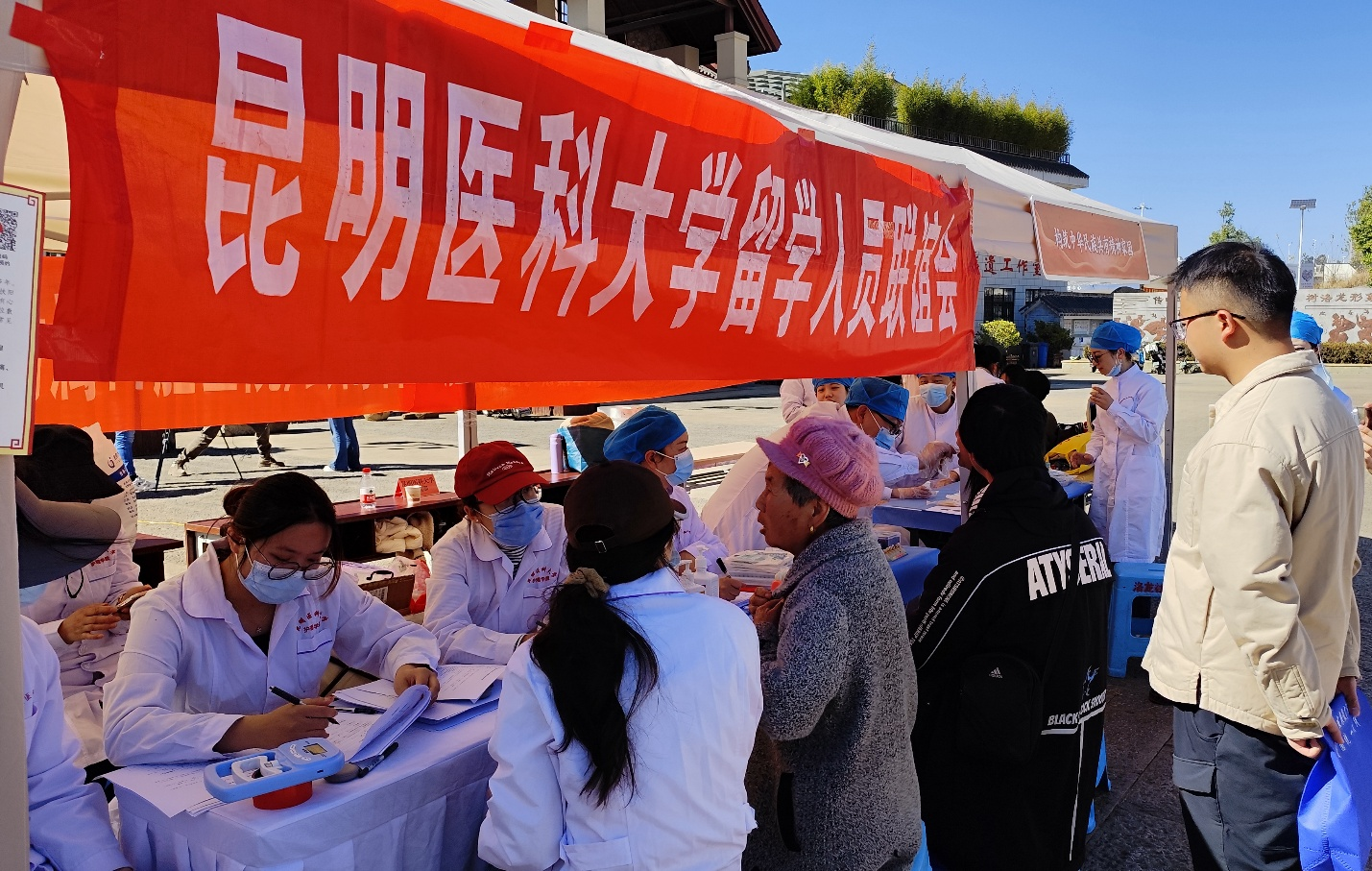 每年1月是云南省民族团结进步宣传教育活动月,今年活动月主题是“沿着习近平总书记的足迹,重温习近平总书记的回信——让民族团结进步之花在云岭大地越开越绚烂”。1月19日,伟德国际1949官网组织学校留学人员联谊会、直属单位党委、基础医学院、护理学院、第一附属医院、附属口腔医院共同组建医疗义诊和健康宣教服务团队,到学校铸牢中华民族共同体意识教育校外实践基地——洛龙社区,参加民族团结进步宣传教育活动月活动。