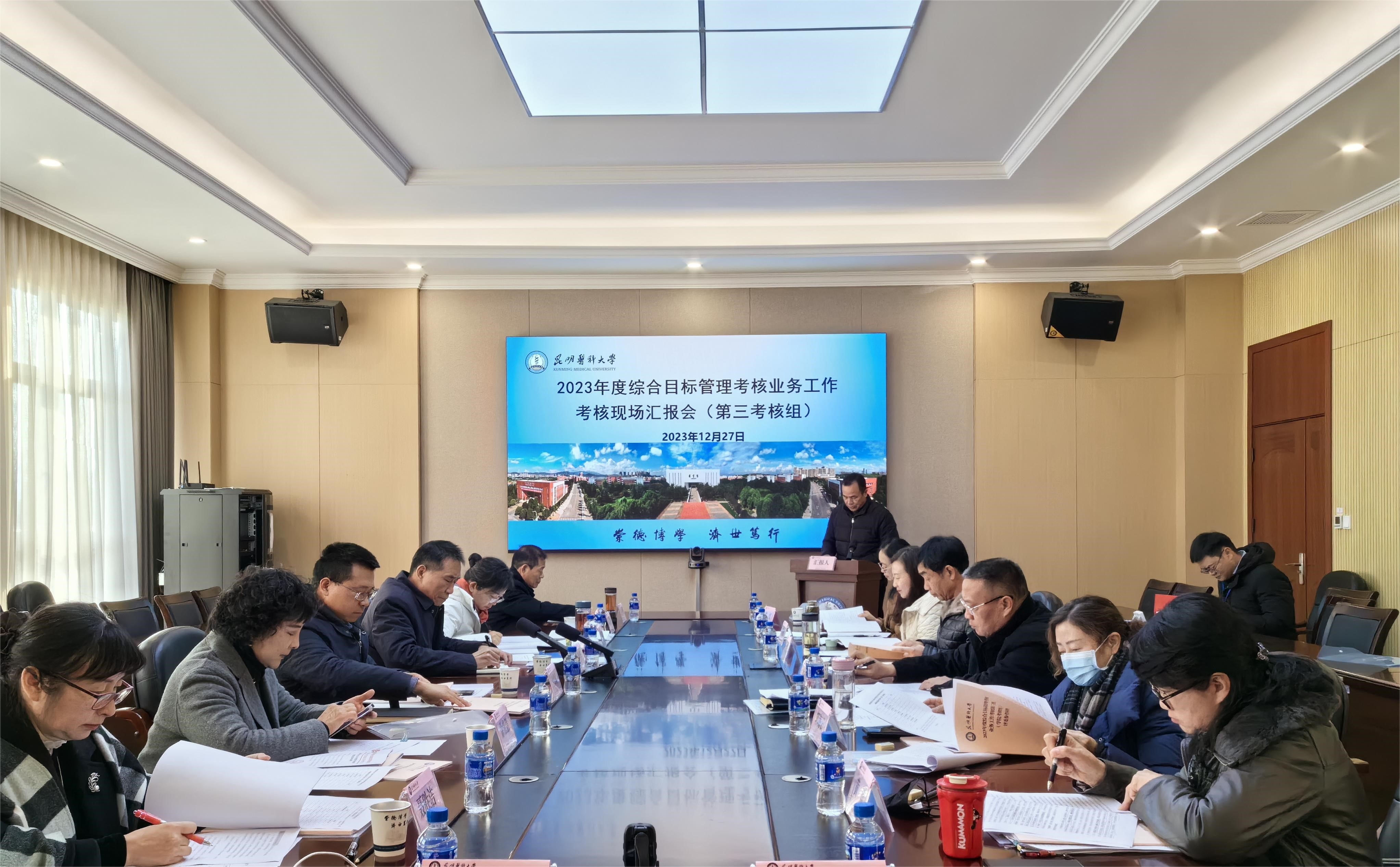 12月27日上午,按照学校综合目标管理考核领导小组的统一安排部署,学校举行了2023年度综合目标管理考核业务工作考核汇报会,全校56个校属单位和11个非直属附属医院共67个单位、部门进行了业务工作考核汇报。