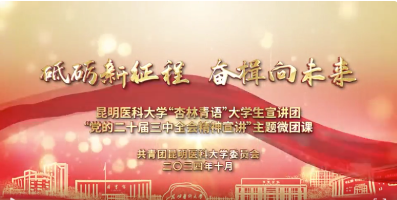 为深入学习宣传贯彻党的二十届三中全会精神,做好党的创新理论的青年化阐释,伟德国际1949官网“杏林青语”大学生宣讲团扬帆再出发,为大家带来 11期“党的二十届三中全会精神宣讲”主题微团课,激励昆医青年为推进中国式现代化贡献青春力量,在强国建设、民族复兴伟业中挺膺担当。