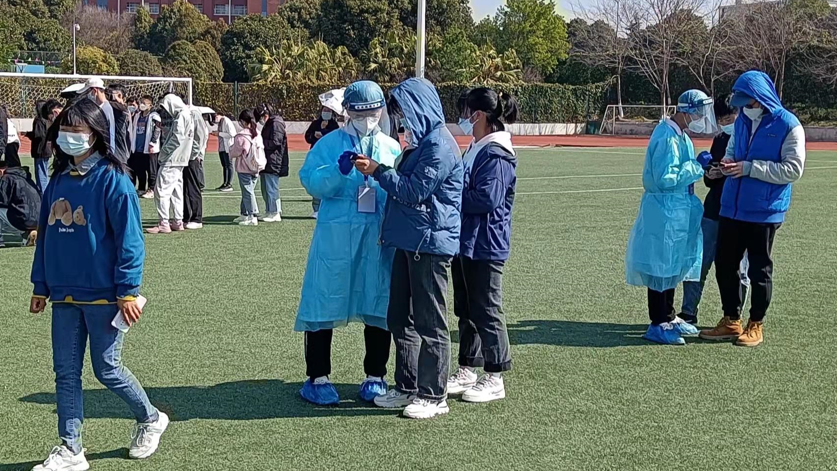 在志愿者们和老师们的相互协作下,为期一天的全体师生员工核酸采样工作顺利完成。此次核酸检测采样工作单检人数18人,混检人数12114人。