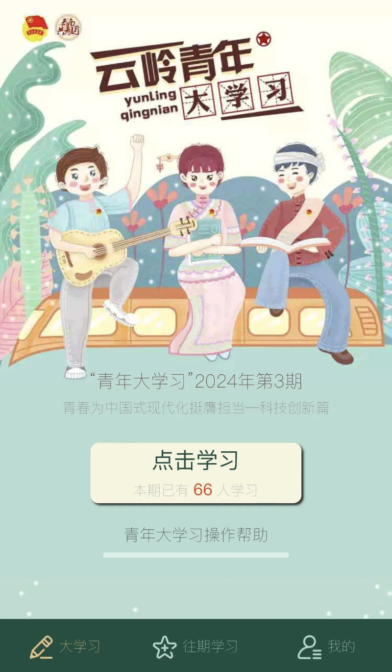 关注“云南共青团”微信公众号,点击“大学习”菜单栏参与学习。