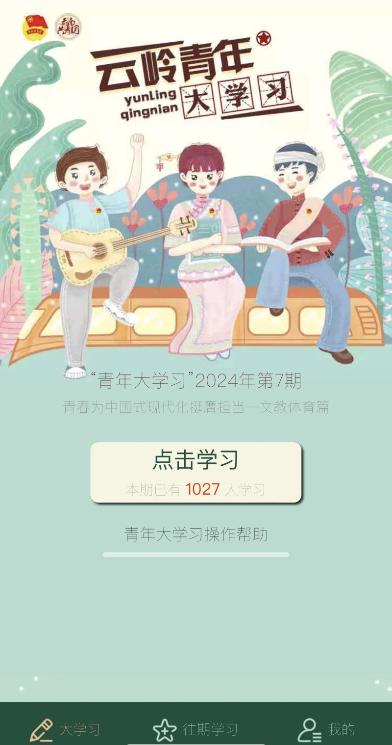 关注“云南共青团”微信公众号,点击“大学习”菜单栏参与学习。