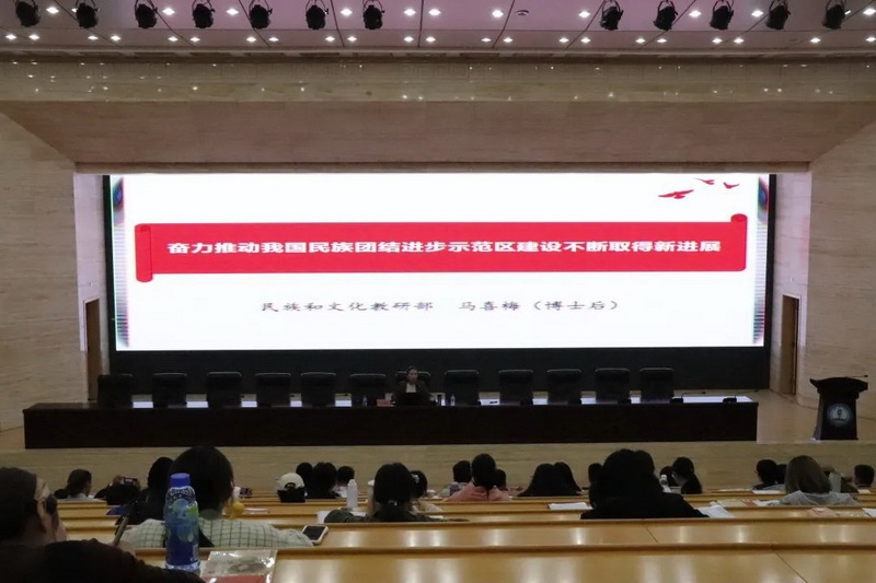 马喜梅老师以“奋力推动我国民族团结进步示范区建设不断取得新进展”为主题,从我国民族团结进步创建工作的发展历程及战略意义、云南民族团结进步事业在全国发展大局中的地位和作用、推动我国民族团结进步示范区建设创新进展的思考三个方面为在场团学骨干讲述了云南民族团结进步事业如何做到“立足示范全国、突出创新引领、贡献云南智慧”。