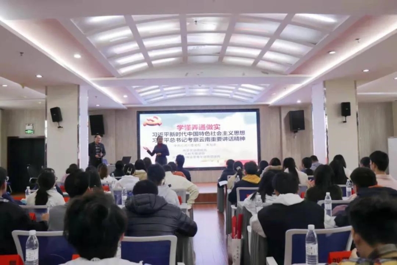 红河州委党校党建教研室副主任、讲师朱加虎进行了《习近平新时代中国特色社会主义思想概论》及考察云南讲话的专题辅导。他向同学们阐述了习近平新时代中国特色社会主义思想的深刻内涵,同时,结合习近平总书记考察云南重要讲话精神,介绍了云南“两型三化”与“三张牌”。