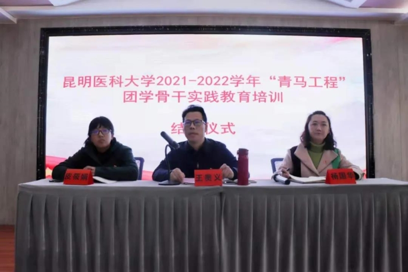 在2021-2022学年“青年马克思主义者培训工程”团学骨干培训结业仪式上,团学骨干代表进行了培训总结,学校党委委员、副校长王贵义、校团委书记杨国华、校团委副书记皮筱娟为团学骨干代表颁发结业证书。学校党委委员、副校长王贵义对本次“青年马克思主义者培训工程”团学骨干培训进行总结,并对参与本次培训的团学骨干提出要求:第一,坚定理想信念,做忠诚的马克思主义信仰者;第二,要把参加此次培训班作为今后学习新起点,做坚持不懈的学习者;第三,要发扬“星星之火,可以燎原”的精神,做马克思主义理论的传播者;第四,各级团组织要认真总结,跟踪培养,做“青马工程”实施的有力保障者。同时,他指出各位学员应以实现中华民族伟大复兴为己任,增强做中国人的志气、骨气、底气,不负时代,不负韶华,不负党和人民的殷切期望。