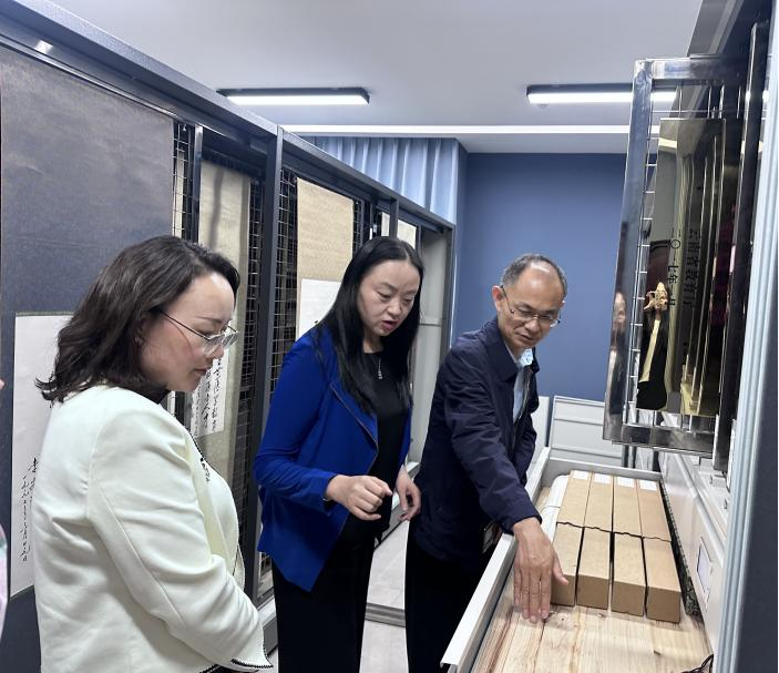会后,来访团队参观了实物档案陈列室及数字化工作室,耿副馆长向我校赠送了山东大学档案馆编研成果,双方合影留念。