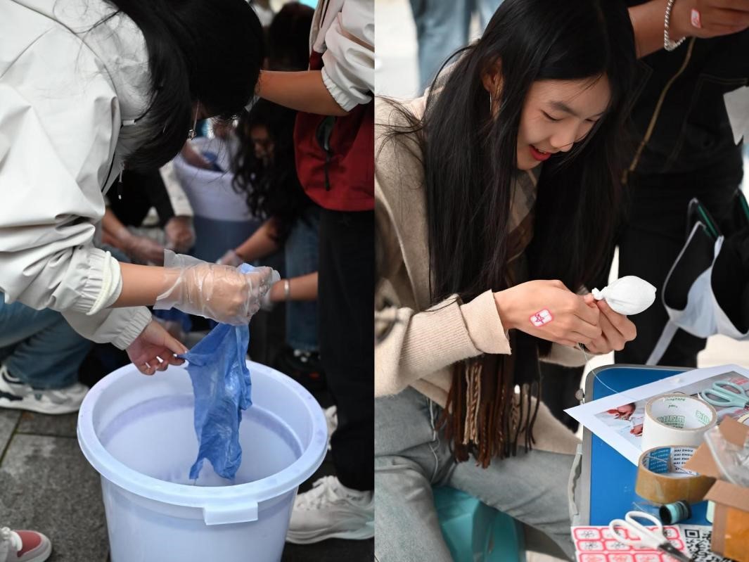 本次活动旨在增强学生对环保重要性的认识,激发其参与环保行动的内在动力,让学生亲手参与环保物品的制作,体验变废为宝的乐 趣,将绿色理念融入日常生活。同时融入非遗扎染,希望同学们也能为中华文化的传承贡献属于自己的青春力量!