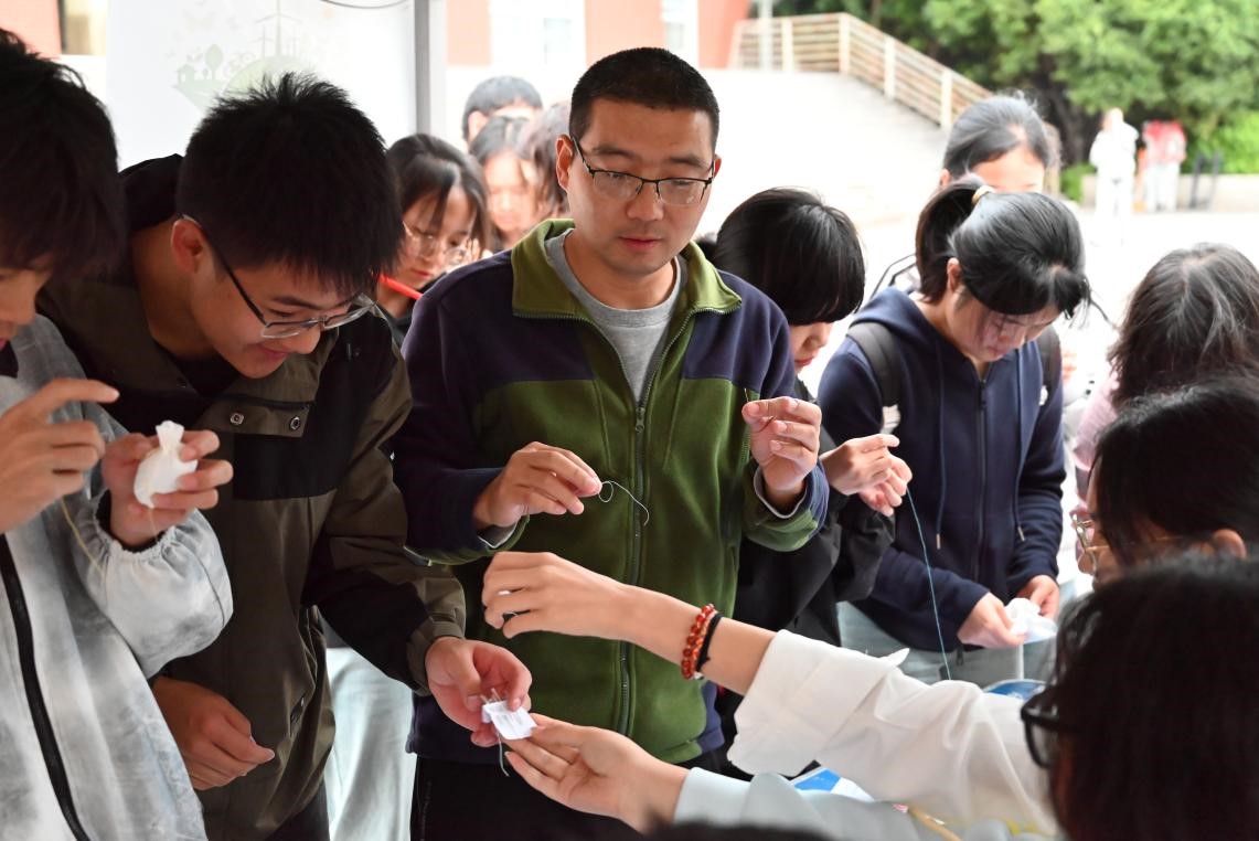 活动过程中,老师们也参与其中,与同学们一起体验香囊制作、穿针引线,体会手工制作的乐趣,为同学们的手工制作点赞。