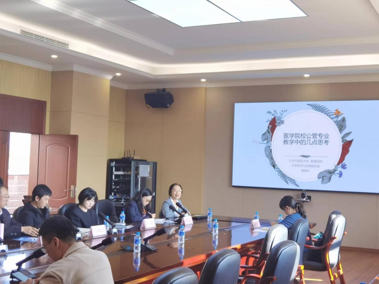 北京中医药大学满晓玮副教授以“医学院校公管专业教学中的几点思考”为题,介绍医学院校公共管理专业专业课程的特点,与大家探讨思政教学、实训课程的具体运用。