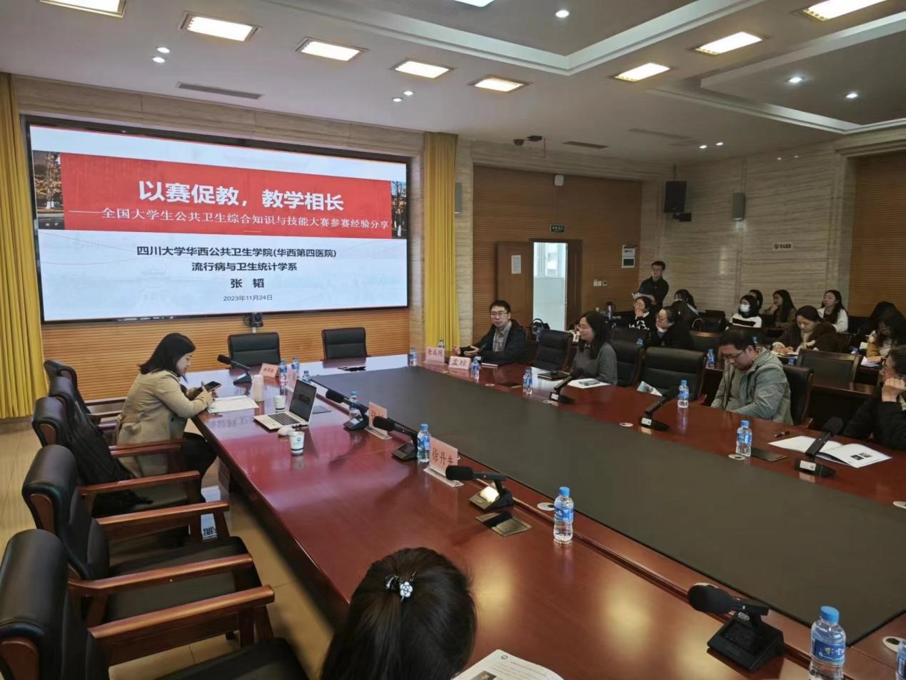 学院学业导师与实习基地老师们围绕着“预防医学专业实践实习过程中存在的问题”展开了讨论,大家就“如何提升预防医学专业学生的实践技能”提出了宝贵的意见和建议。会后,公共卫生学院流行病与卫生统计学系的教师还和四川大学华西公共卫生学院教学部林萍部长和张韬副教授就“如何有效促进两校流统系之间教学和科研合作”展开深入交流。