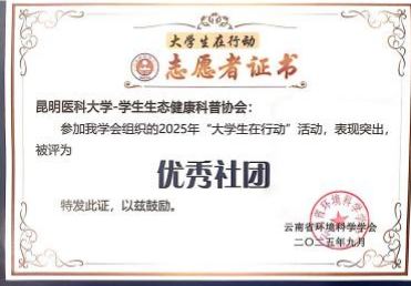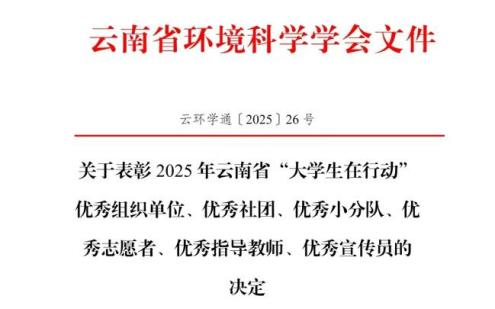9月28日,云南省环境科学学会2025年“大学生在行动”社会实践总结表彰大会顺利举行。伟德国际1949官网学生生态健康科普协会积极组织、广泛动员,带领全校师生深度参与本次活动。经评选,我校多个集体与个人表现突出,荣获多项省级表彰。