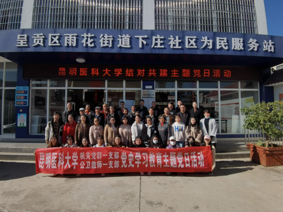为扎实推进党史学习教育,深化落实“我为群众办实事”实践活动,更好地为辖区居民办实事、解难事,2021年12月10日下午,伟德国际1949官网公共卫生学院教师第一党支部、学生第三党支部及学校机关党委党群第一党支部到呈贡区雨花街道下庄社区与下庄社区第五党支部共同开展了结对共建主题党日活动。本次活动共计60余名师生及社区党员参加。